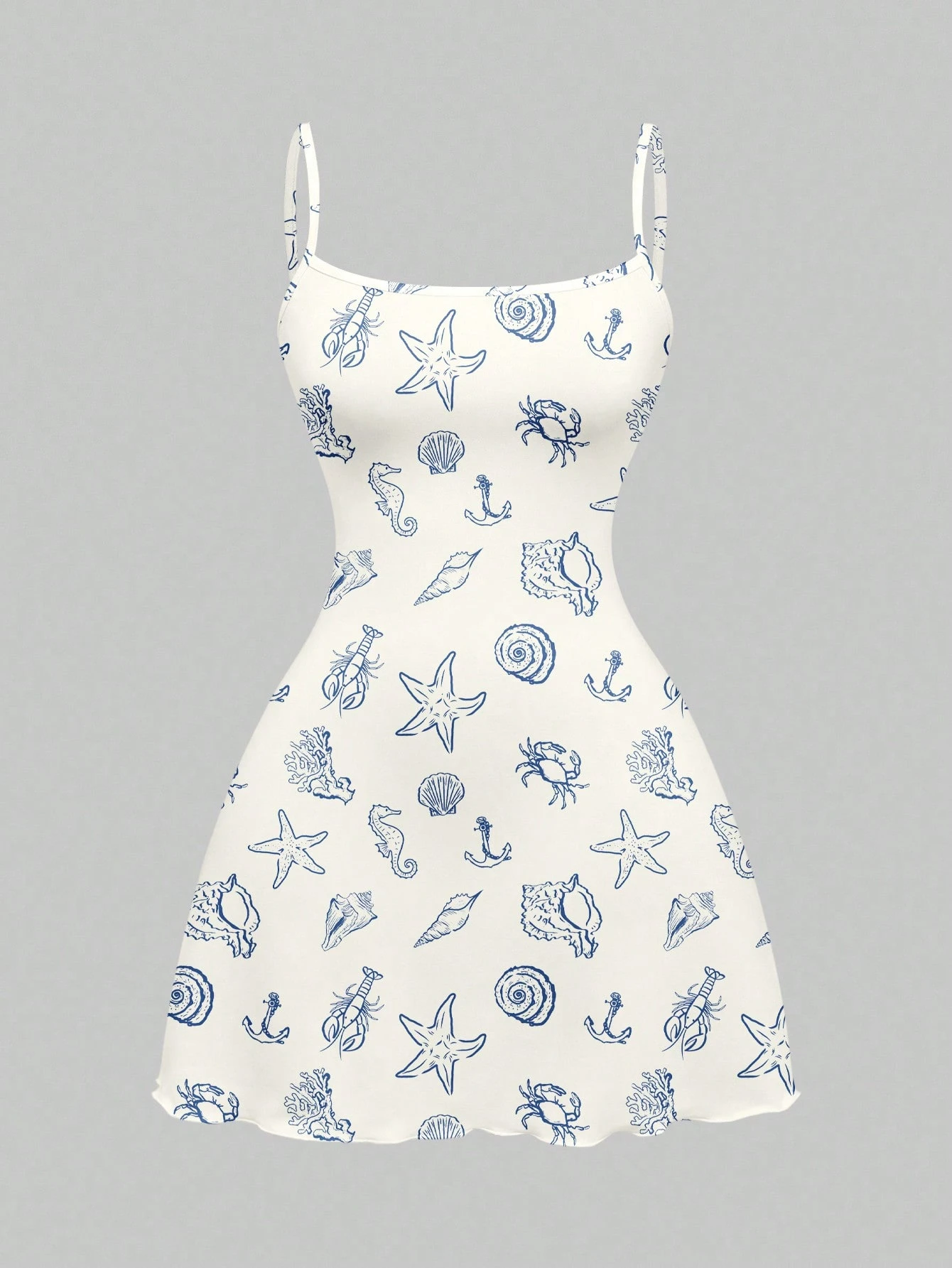 Abito mini sexy da donna con stampa a conchiglie, adatto per primavera/estate