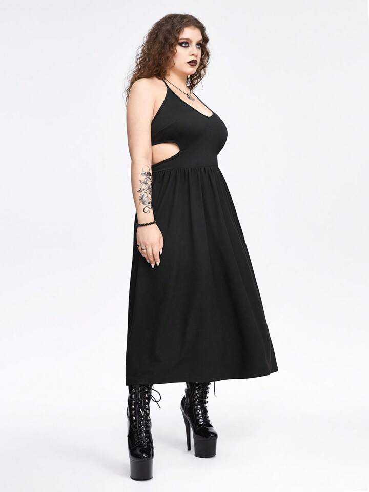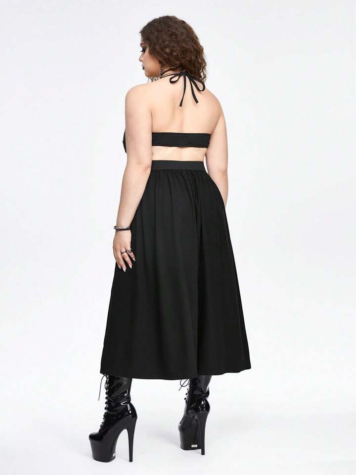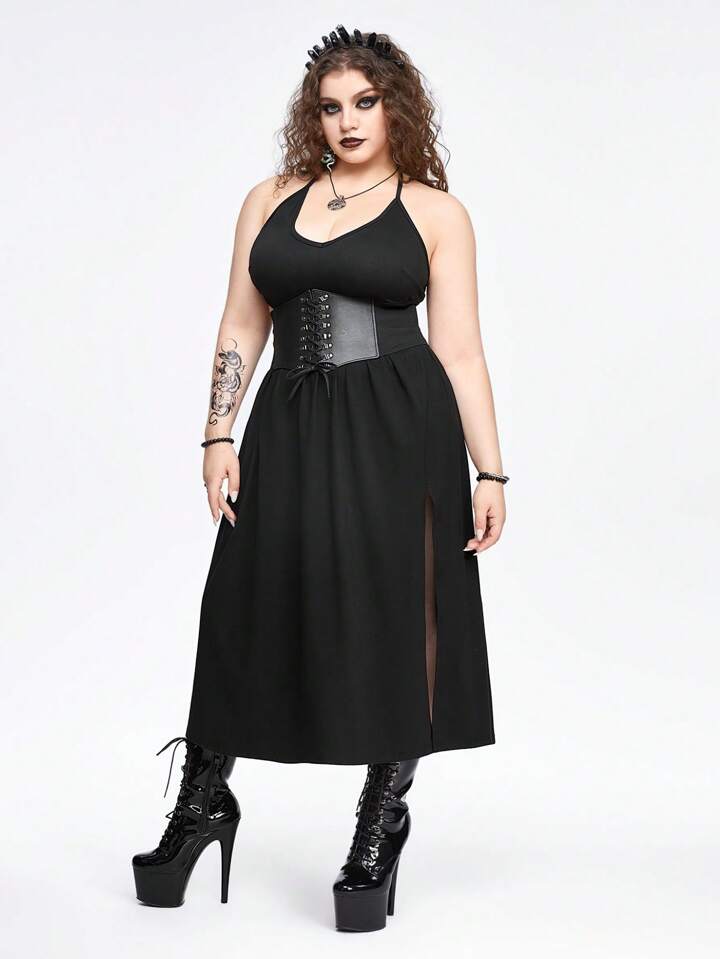 Goth Abito da sera gotico sexy senza schienale in due pezzi con spacco per vita, taglie comode, estivo
