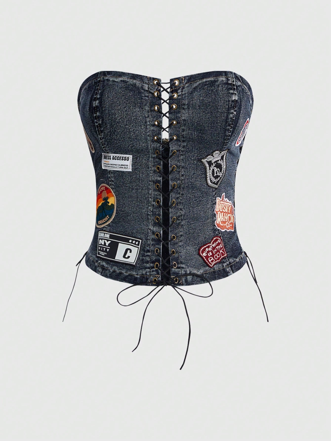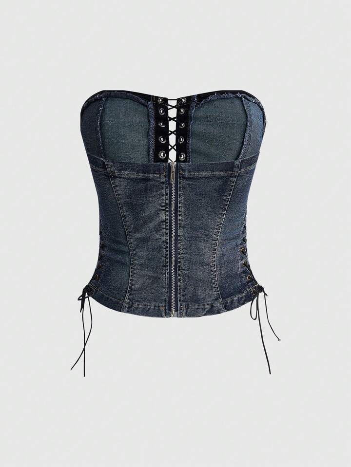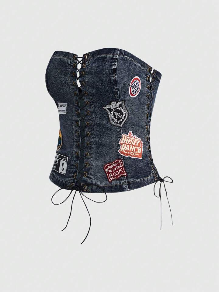 Top corto a fascia con grafica punk rock sexy, camicia di jeans da donna