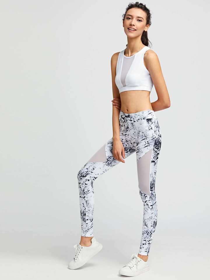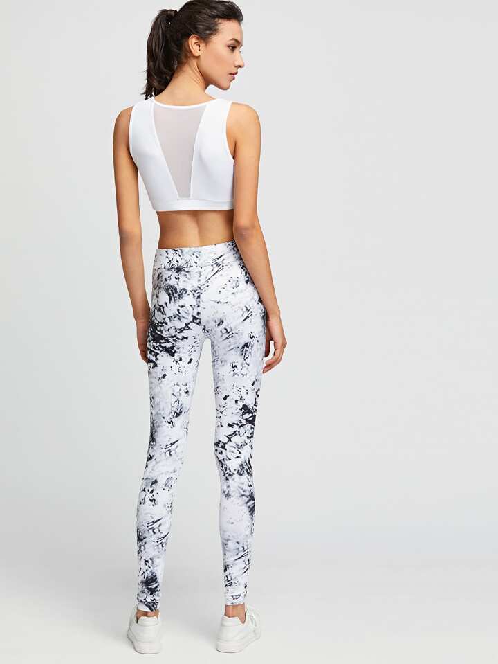 Sheer Mesh Insert Canotta Con Tie Dye Leggings