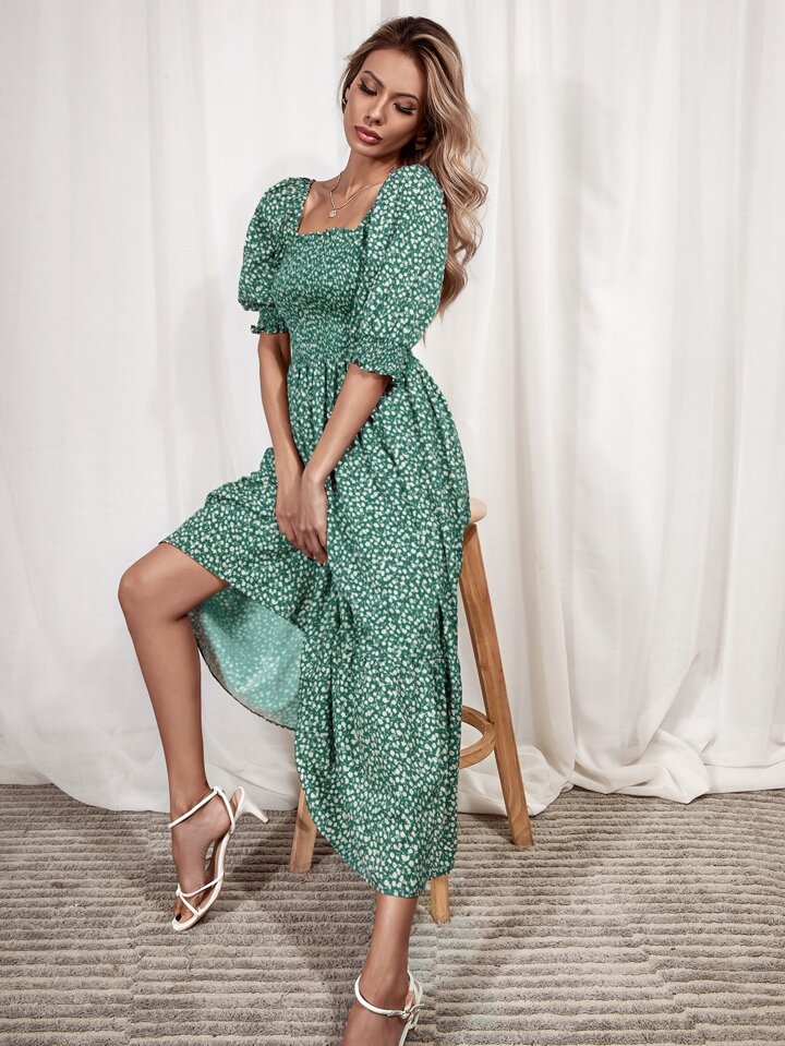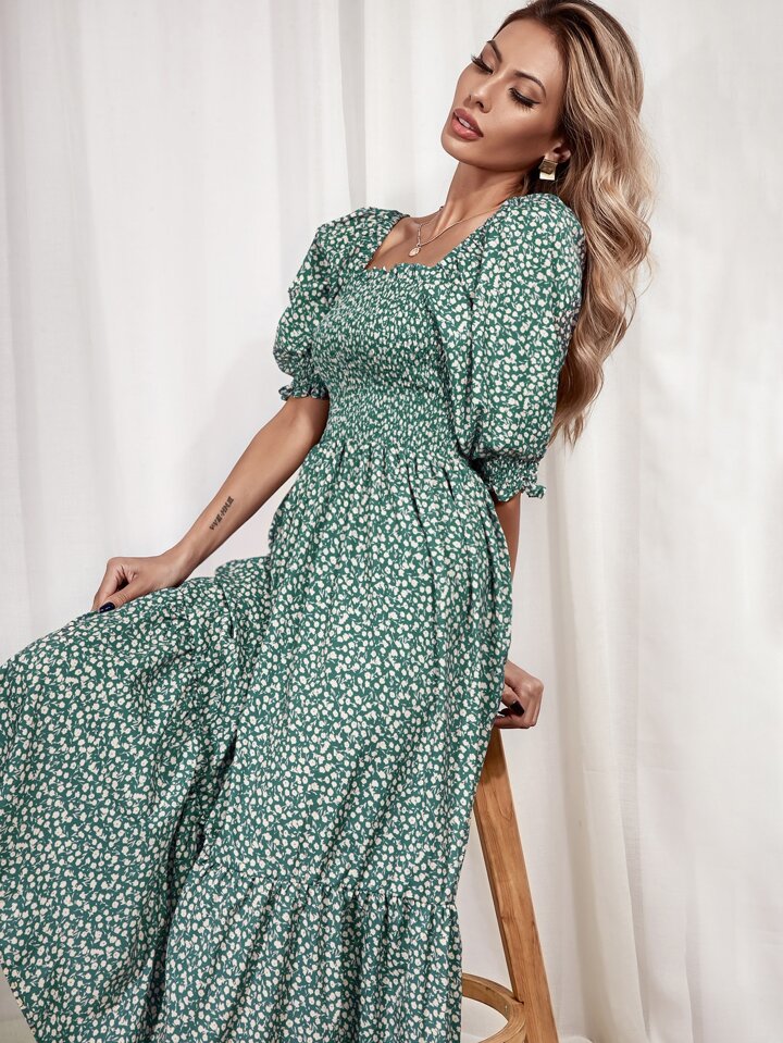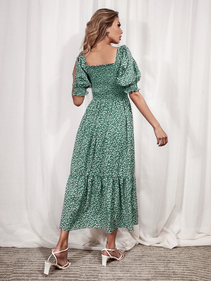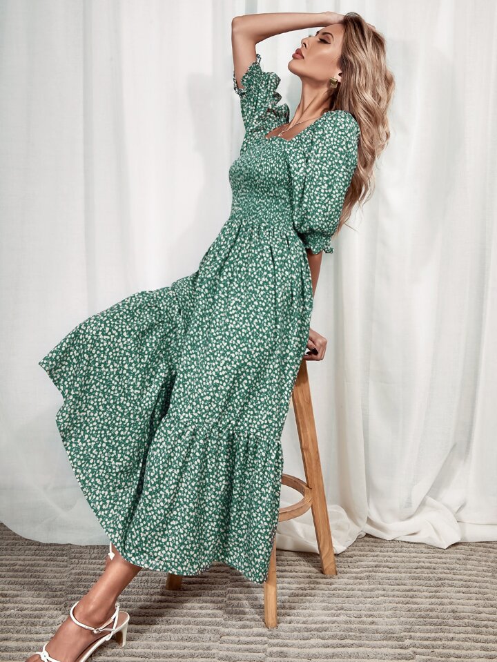 Abito con stampa ditsy floreale e orlo a volant