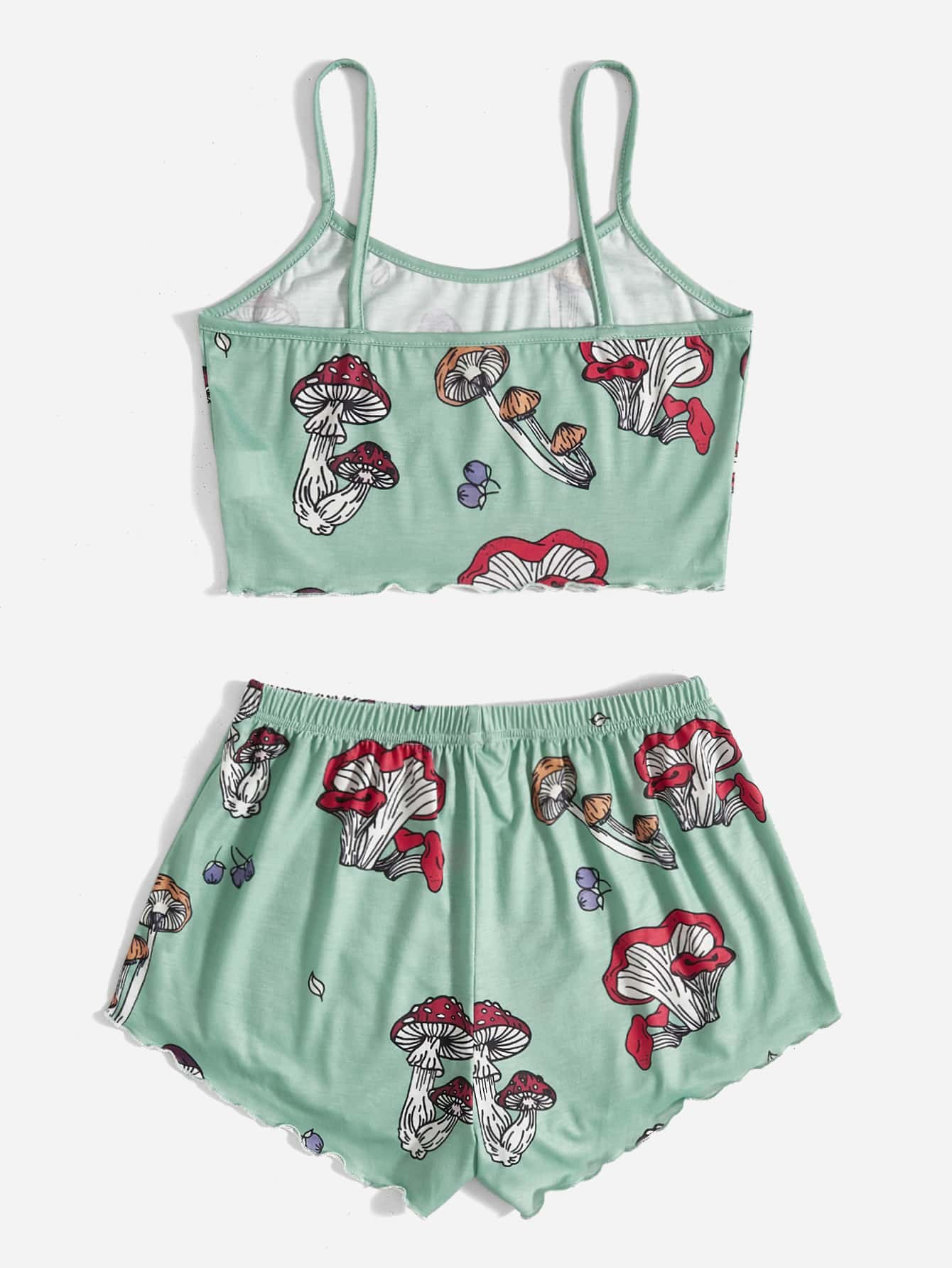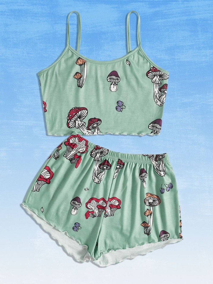 Silly Little Thoughts Set pigiama con stampa funghi orlo lattuga