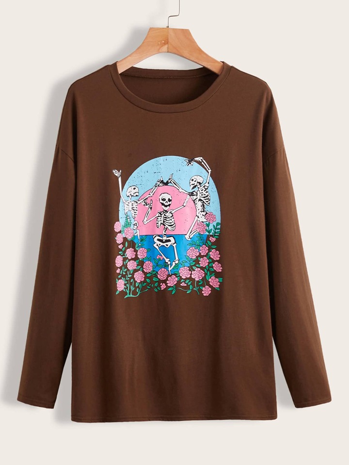 Maglietta con scheletro e floreale