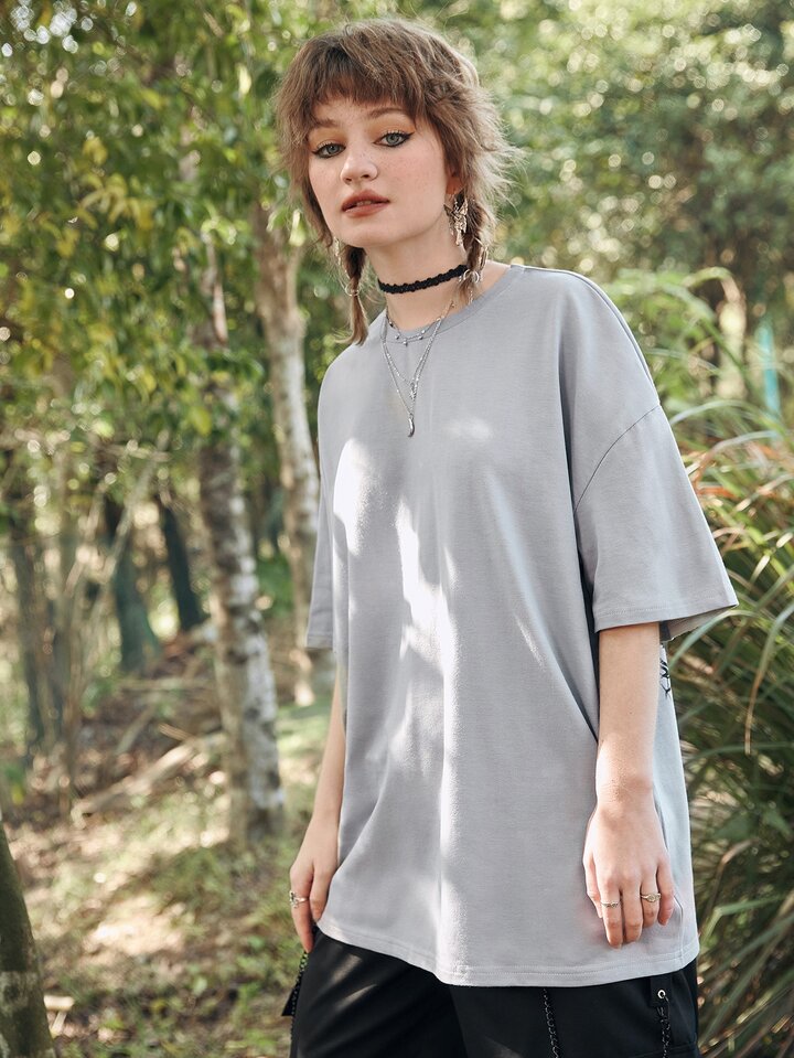 Maglietta con spalla cadenti con stampa teschi