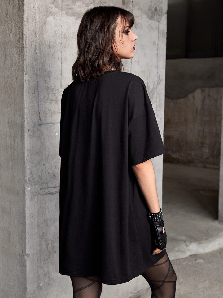 Abito maglietta con spalle cadenti teschio & con grafica slogan