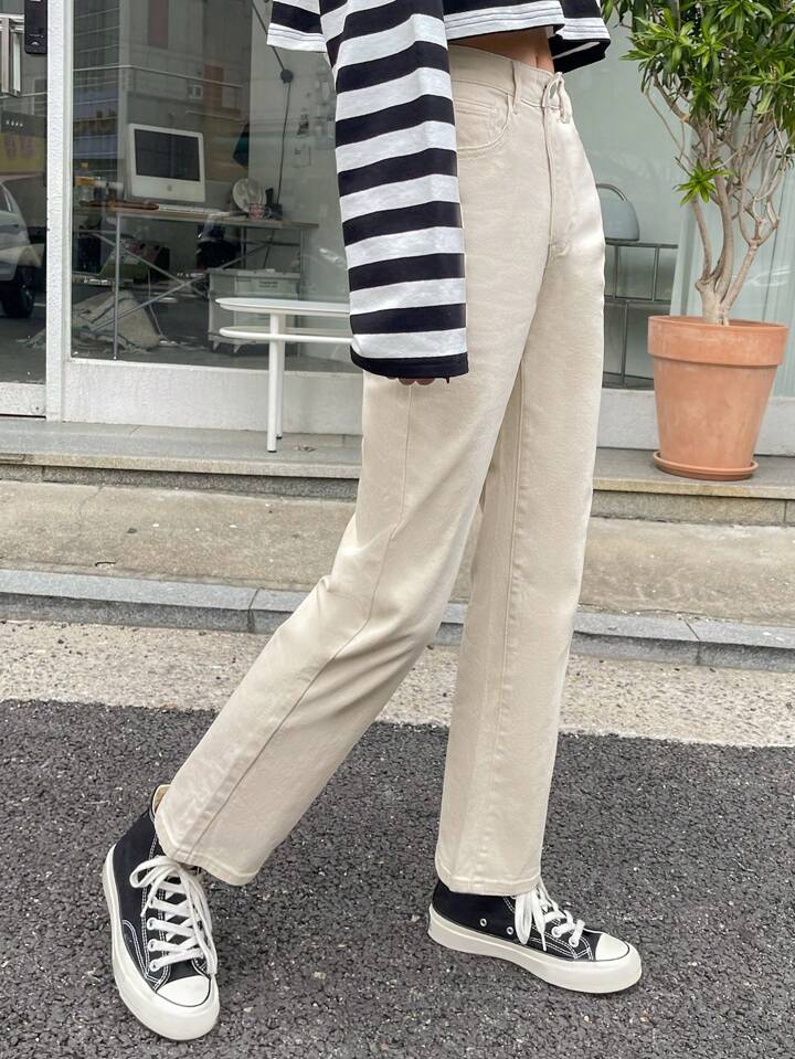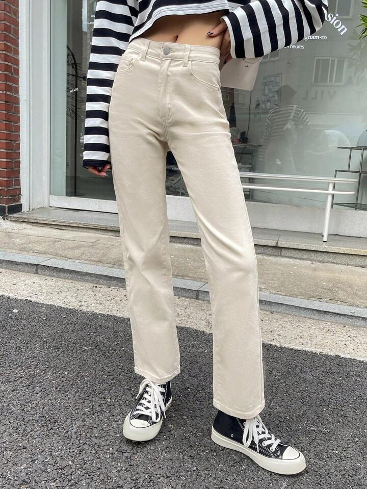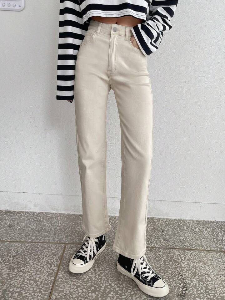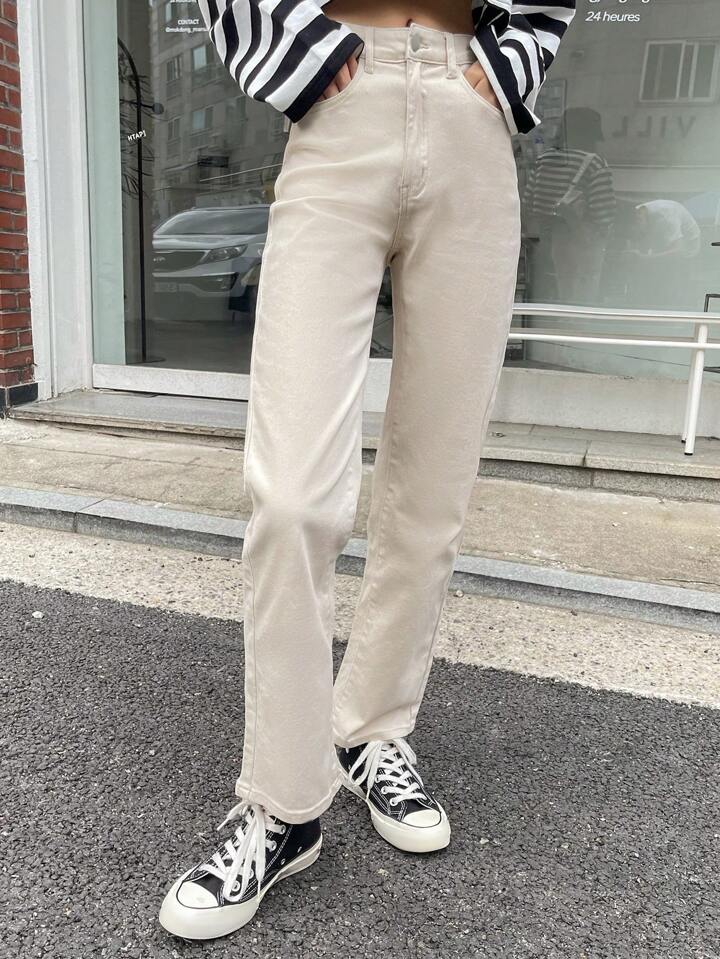 Jeans a gamba dritta con tasche inclinate, abbigliamento per il ritorno a scuola