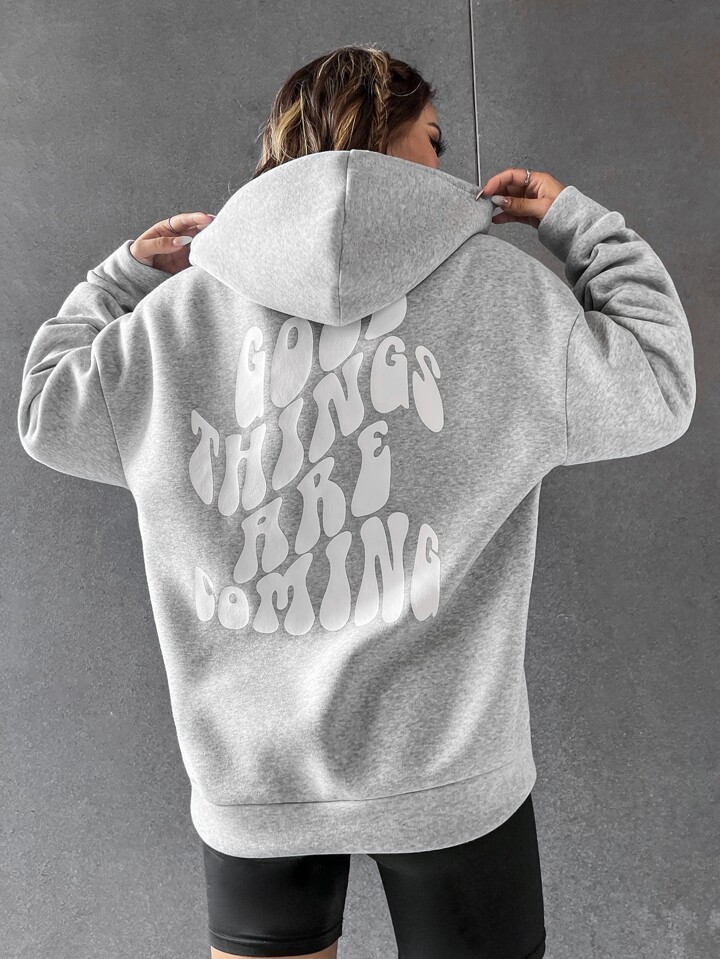 Felpa con cappuccio con grafica slogan spalle cadenti con coulisse foderato termico