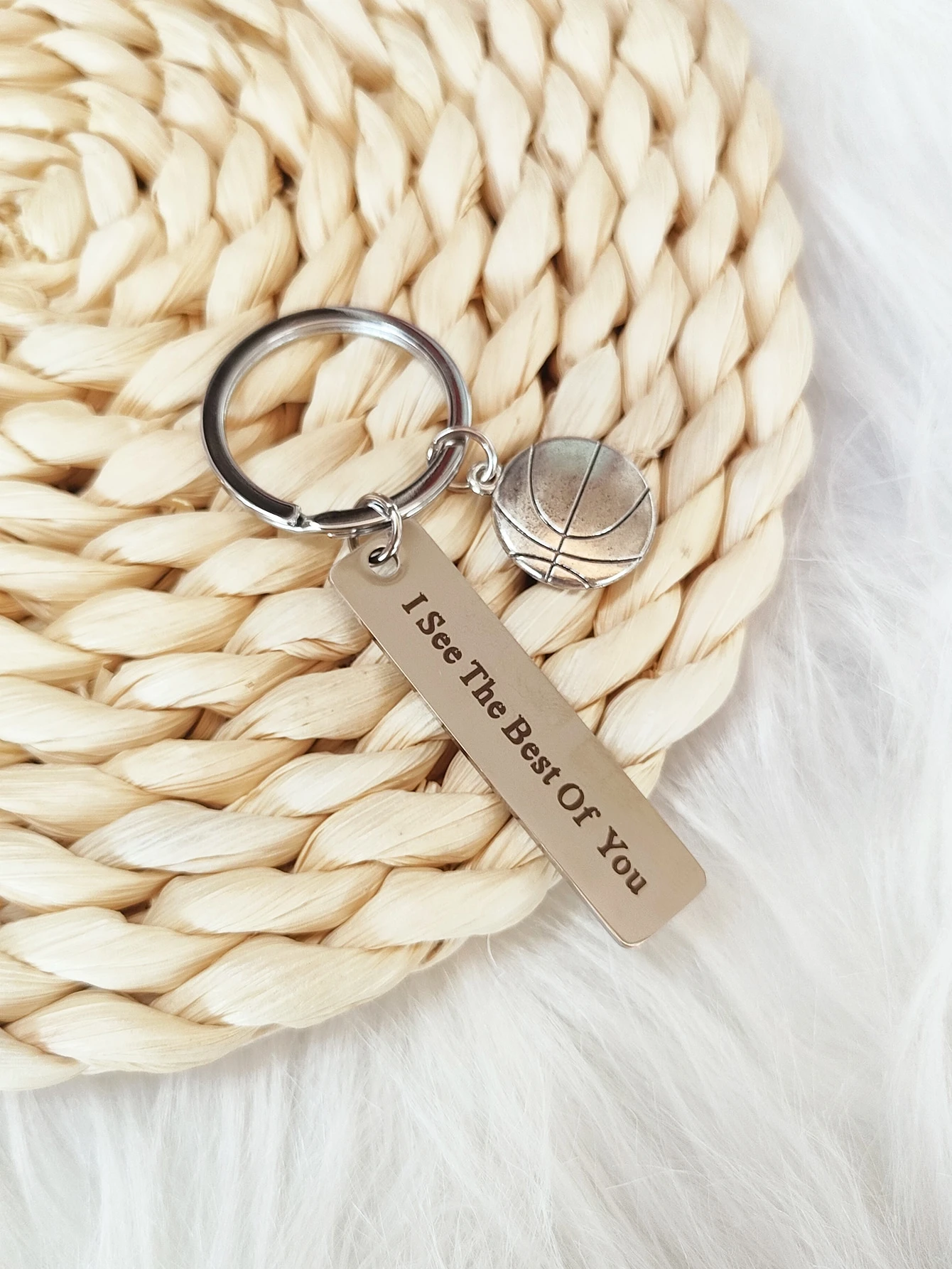 Portachiavi con grafica slogan rettangolo & basketball ciondolo