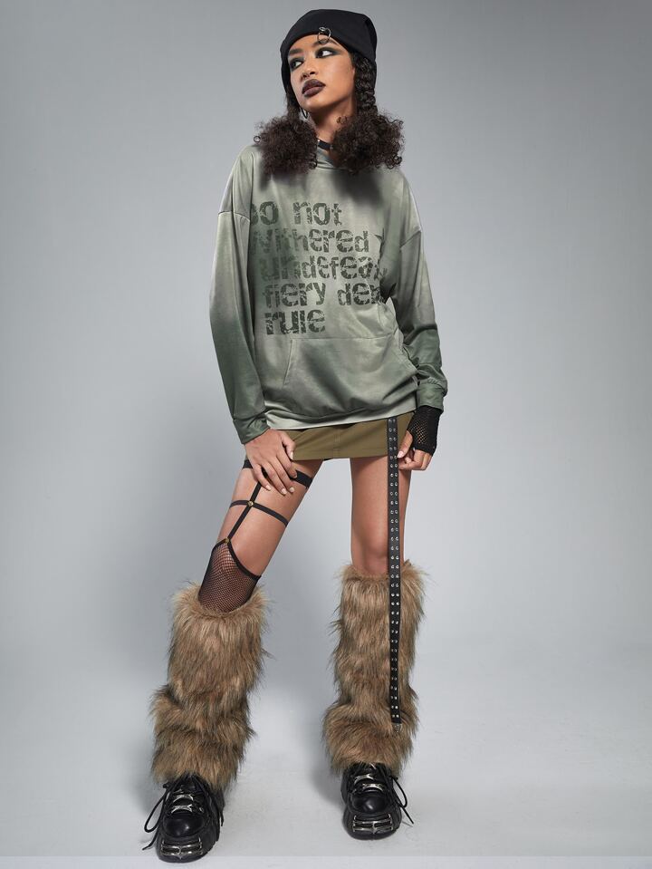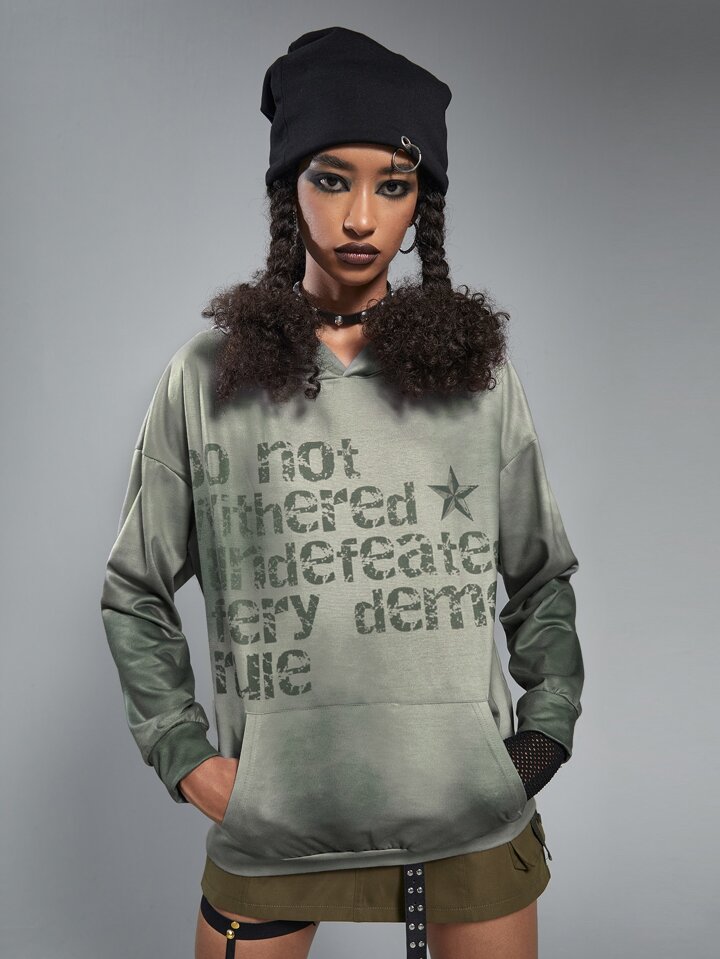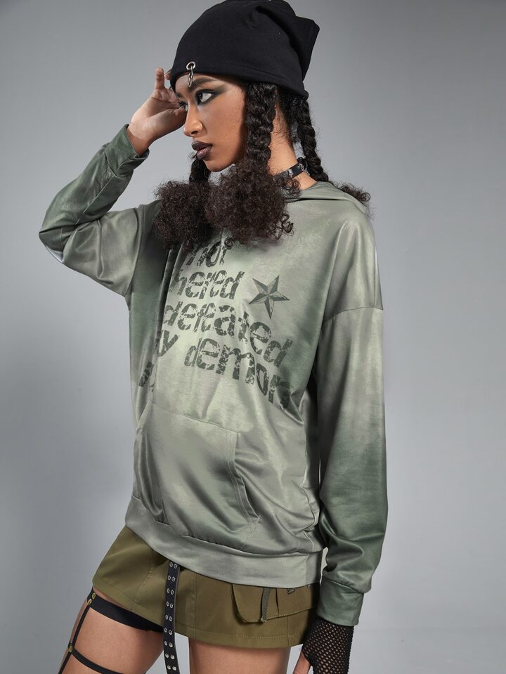 Felpa con cappuccio slogan tie dye con tasca a marsupio