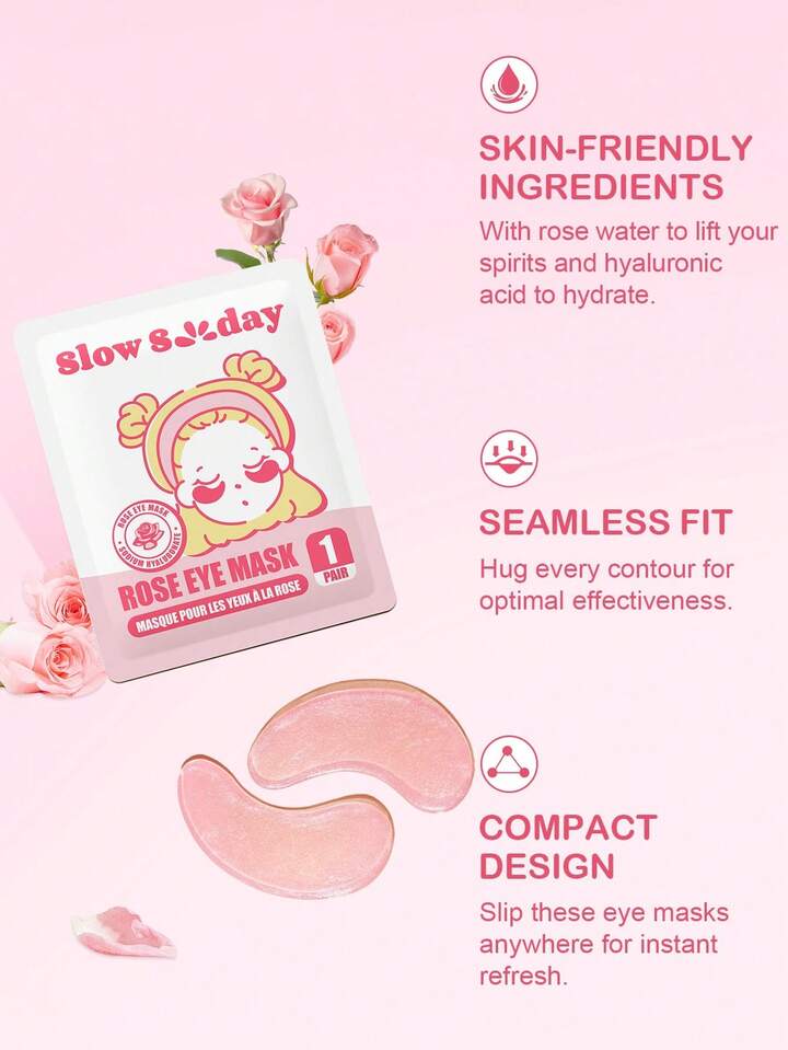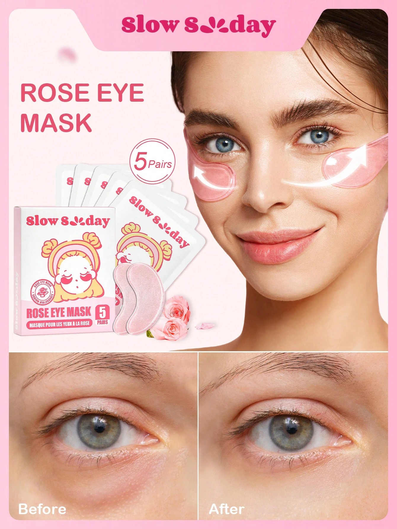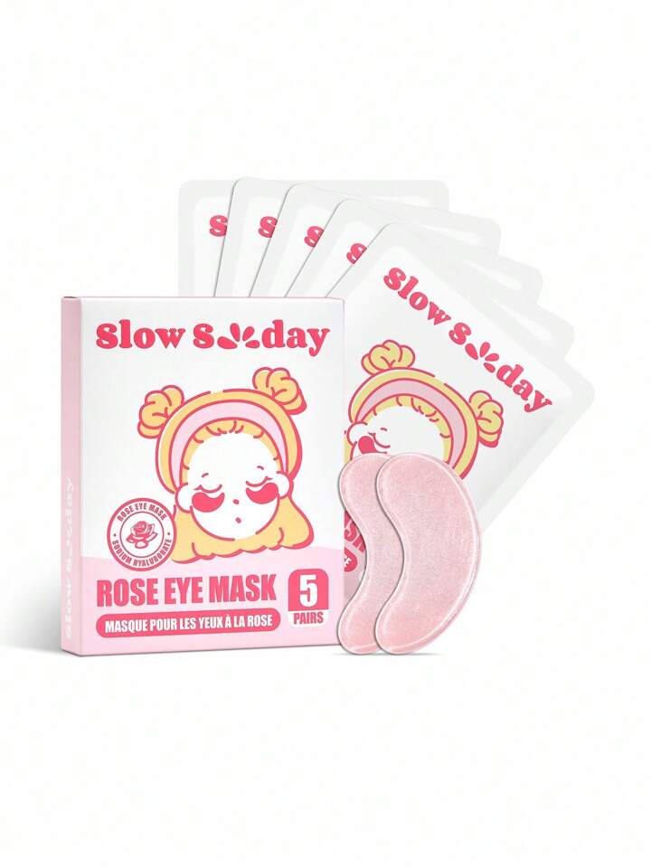 Maschera per occhi alla rosa "Slow Sunday", maschera per occhi, toppe per occhi, cosmetica coreana, con acqua di rosa e ialuronato di sodio, per ridurre borse sotto gli occhi, migliorare le occhiaie, rassodare la pelle, illuminare il contorno occhi