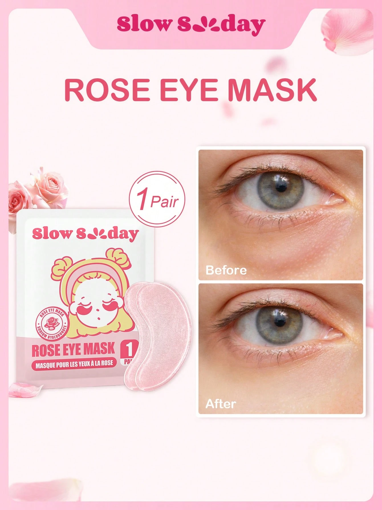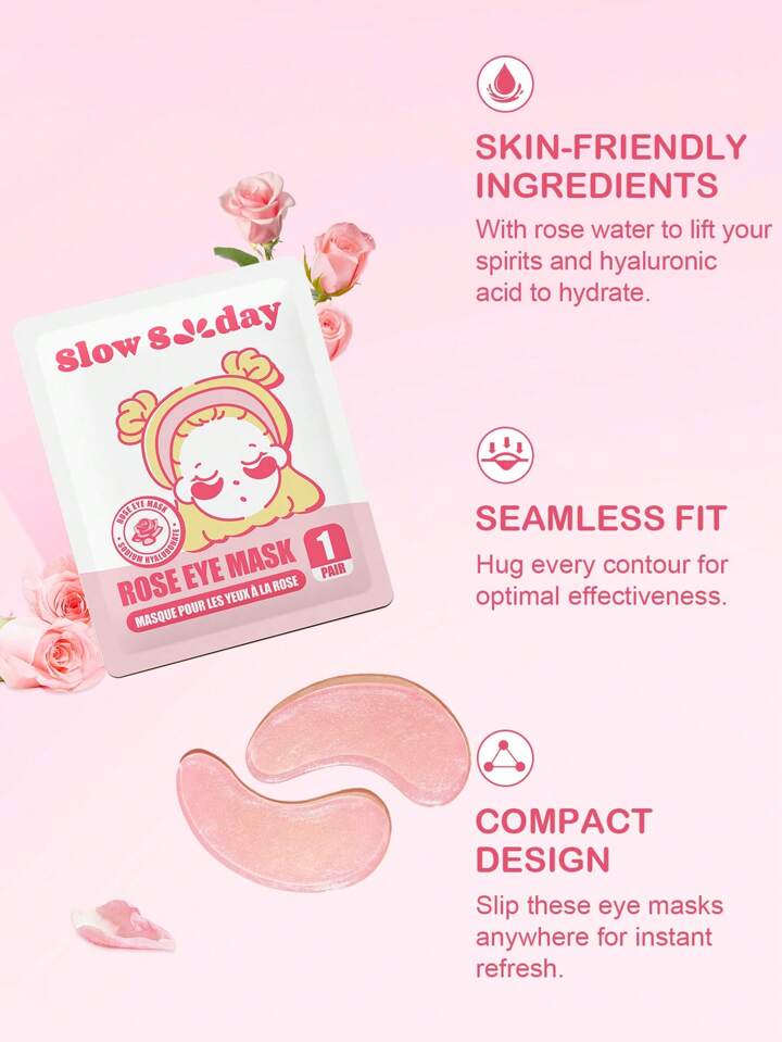 Maschera per gli occhi "Slow Sunday Rose", maschera per gli occhi, cerotto per gli occhi, skin care coreano, con acqua di rosa e sodio ialuronato, per ridurre borse sotto gli occhi, migliorare le occhiaie, rassodare la pelle, illuminare il contorno occhi