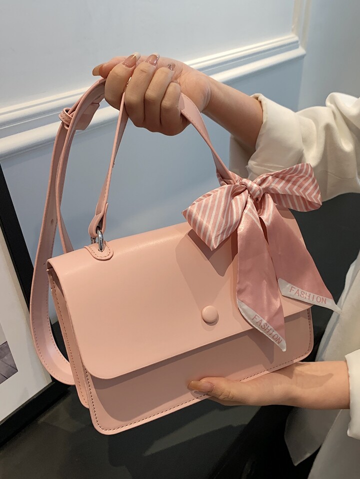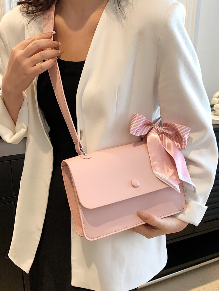 Borsa quadrata piccolo patta bottone & con decorato fiocco minimalista rosa