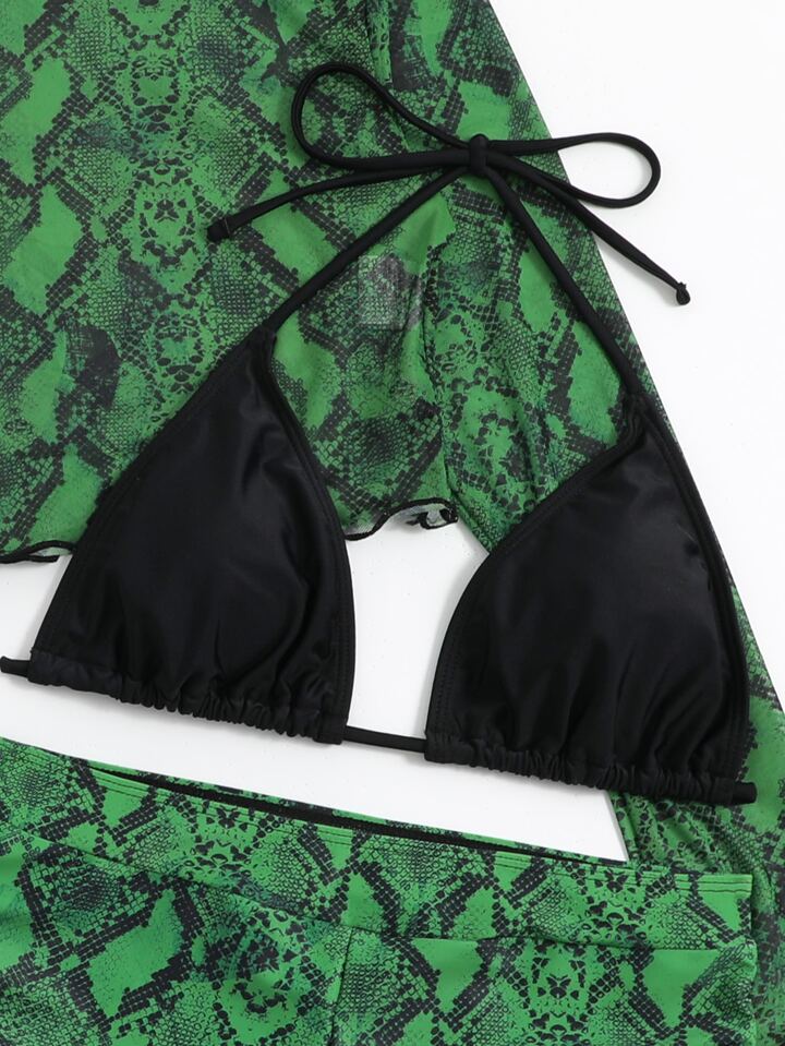 Insieme Bikini Con Stampa Serpente Per Spiaggia Estiva E Copertura Abbinata