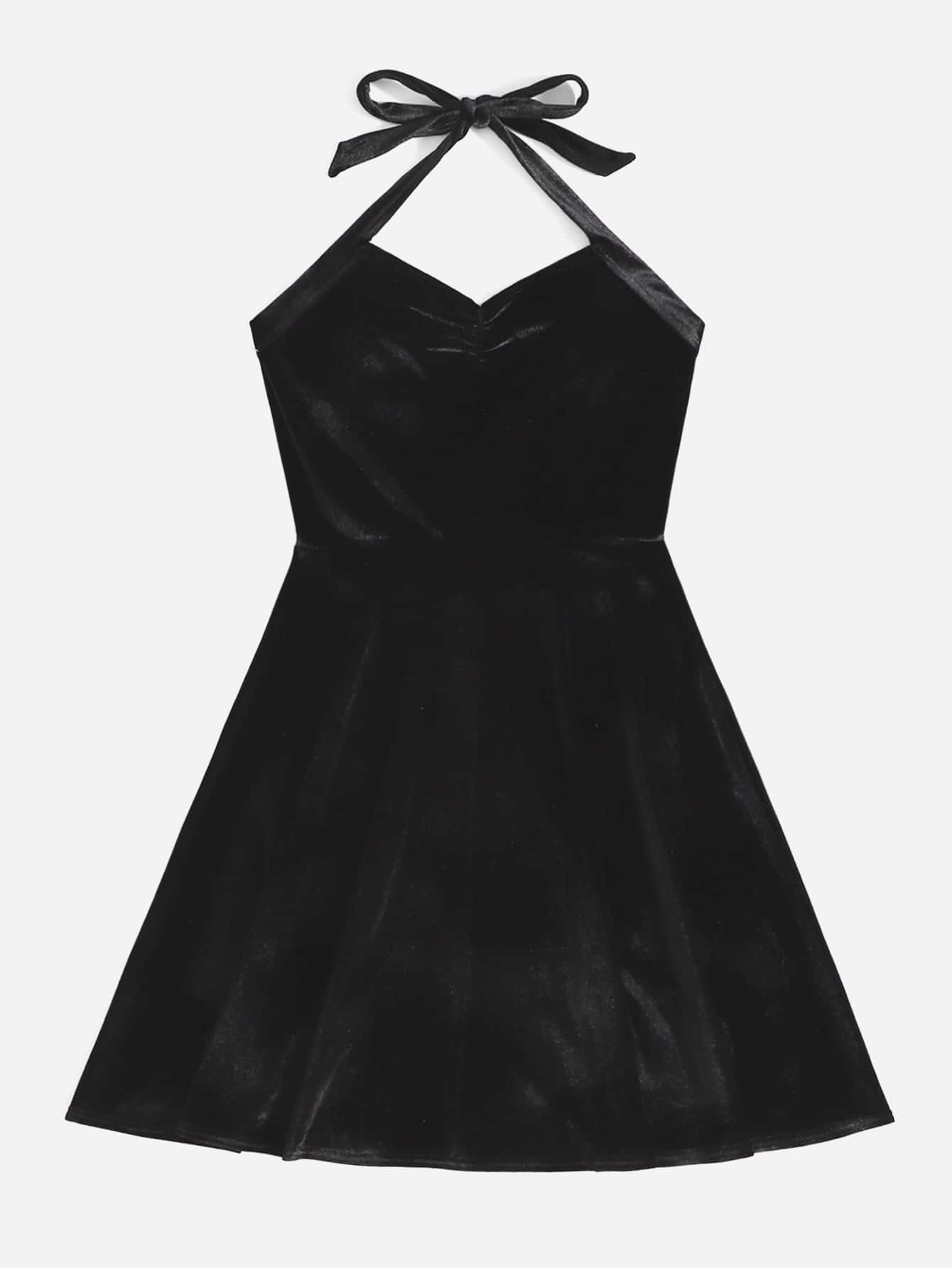Abito monocolore con schiena scoperta con collo halter di velluto
