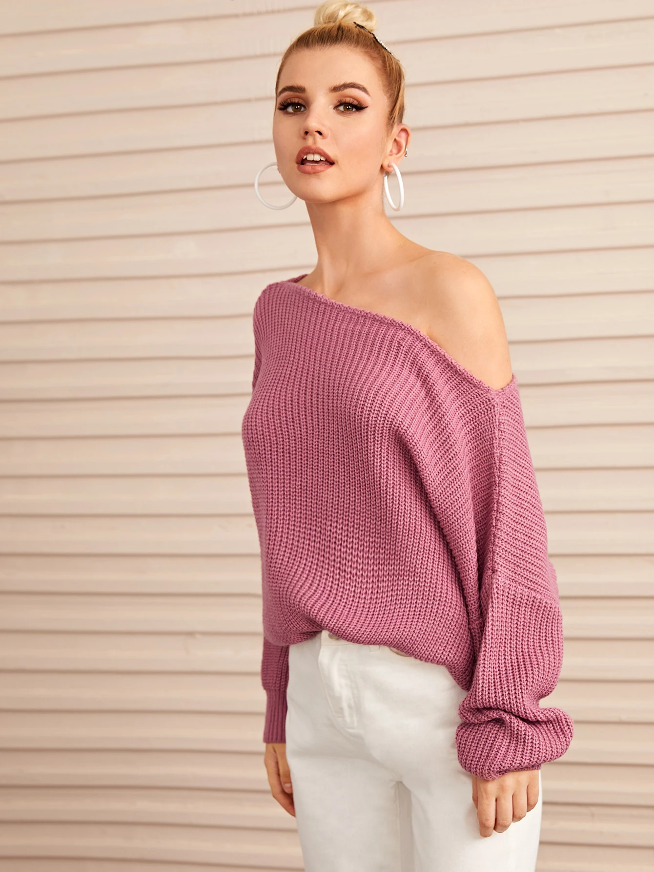 Maglione con scollo a barchette con spalle cadenti