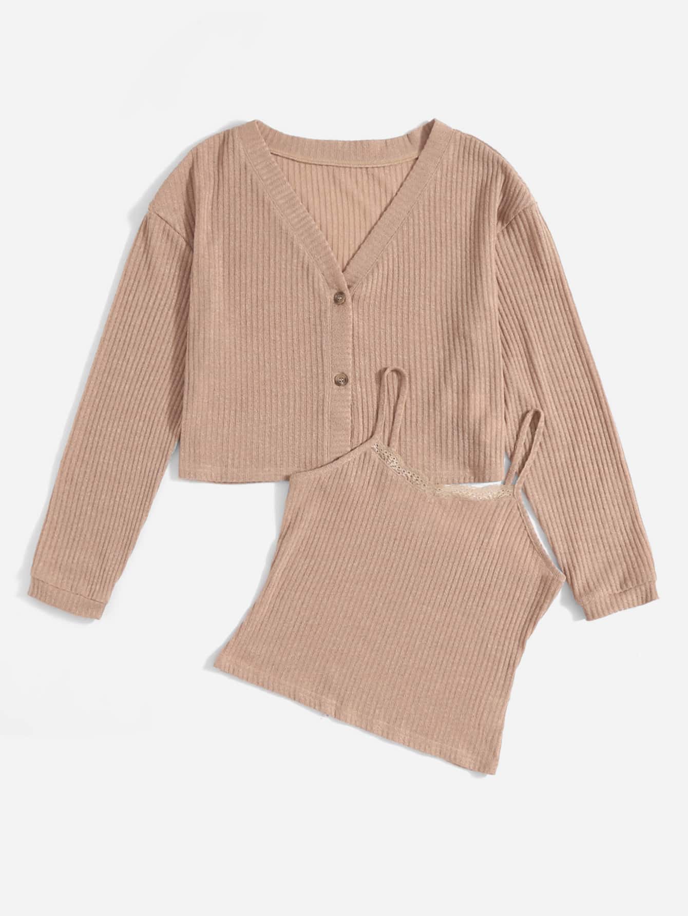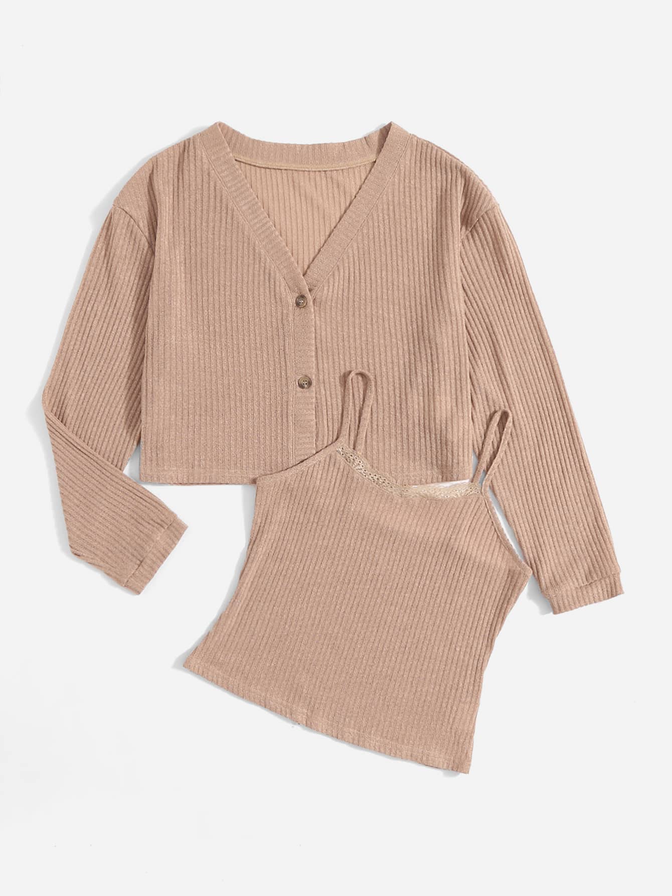 Maglietta corta monocolore con bottone frontale a costine & Top con bretelle sottile