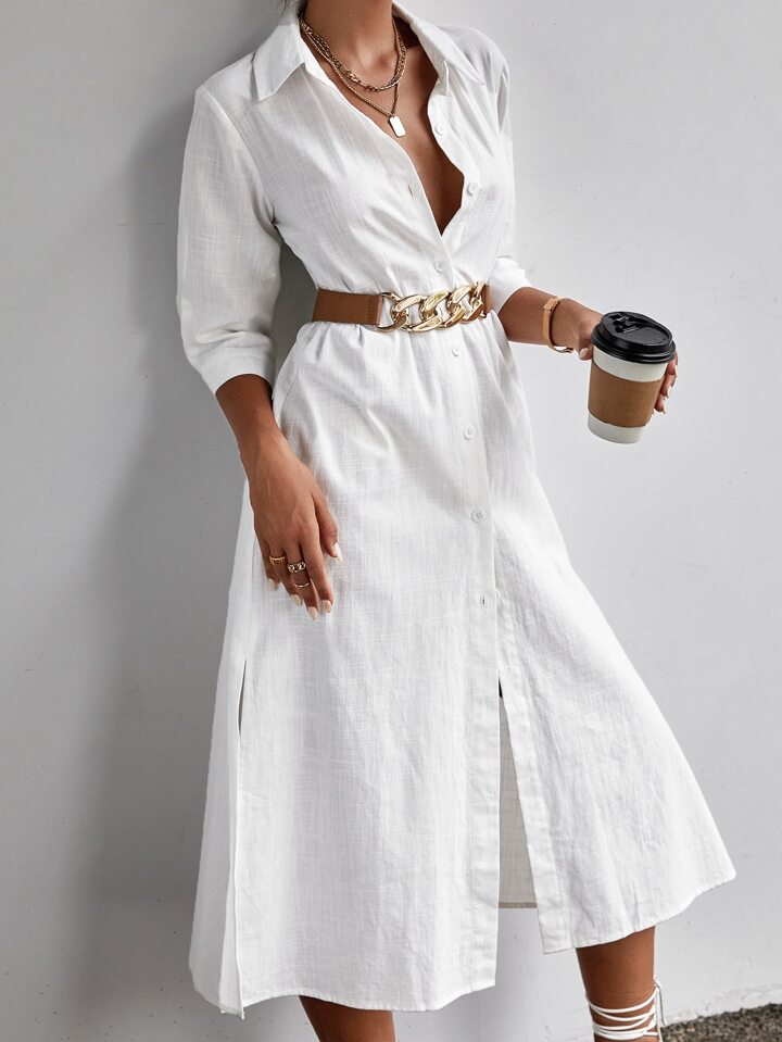 Abito Fessura alta Bottone frontale Colore unico Elegante