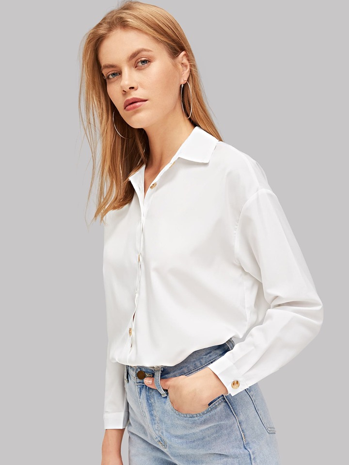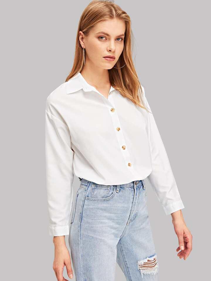 Camicia con bottoni e orlo curvo, con maniche lunghe