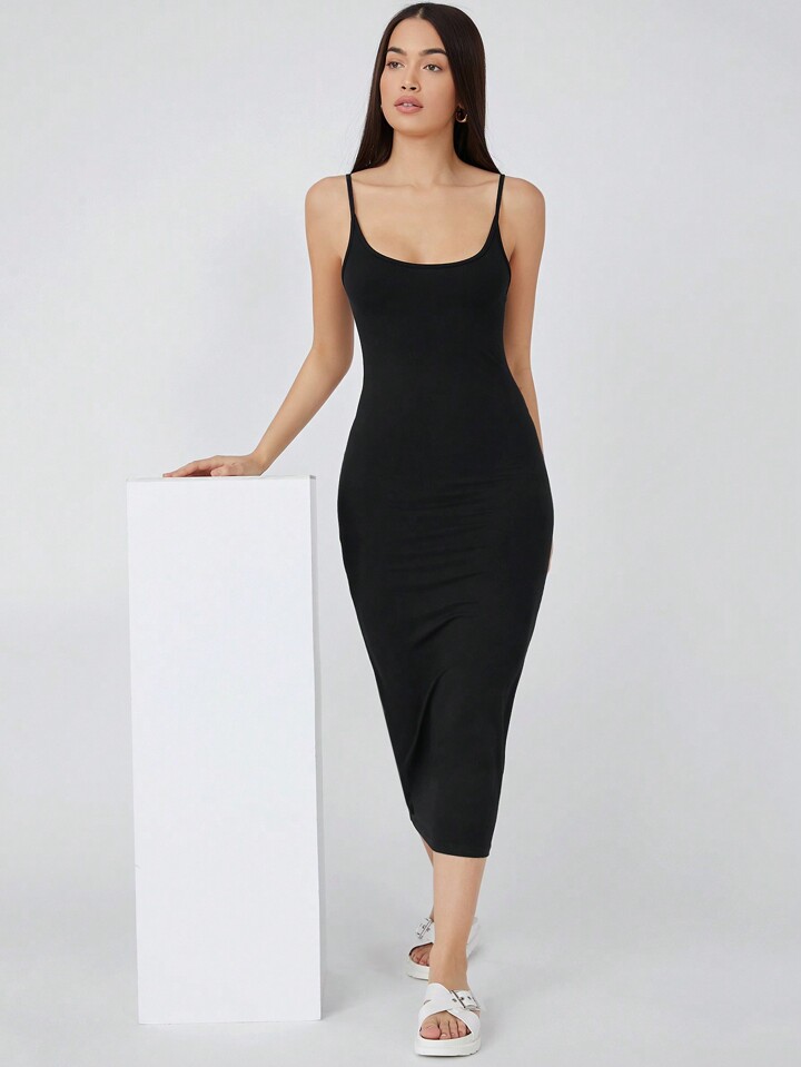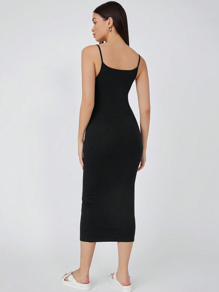 Vestito Solido Da Cena Informale Con Spaghetti E Fascia Attillato Al Corpo