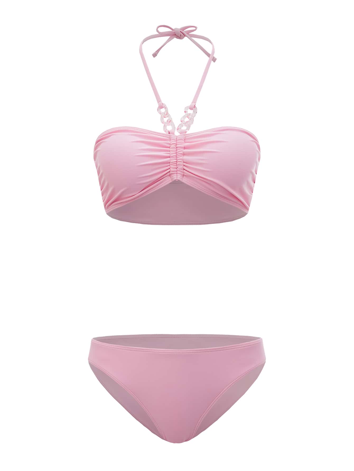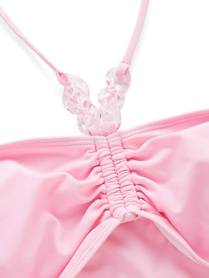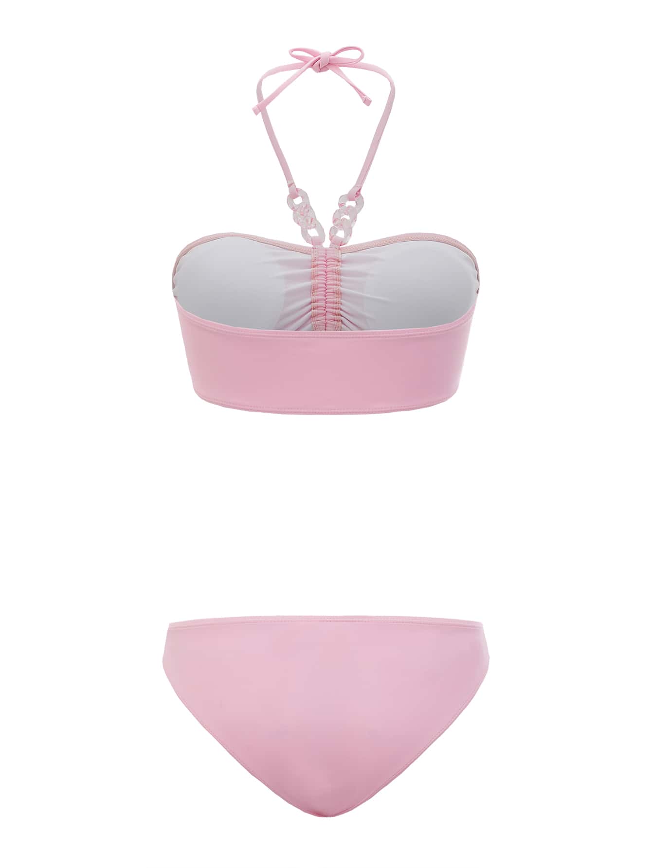 Bikini con bretelle annodate al collo arricciate con decorazioni a catena solida