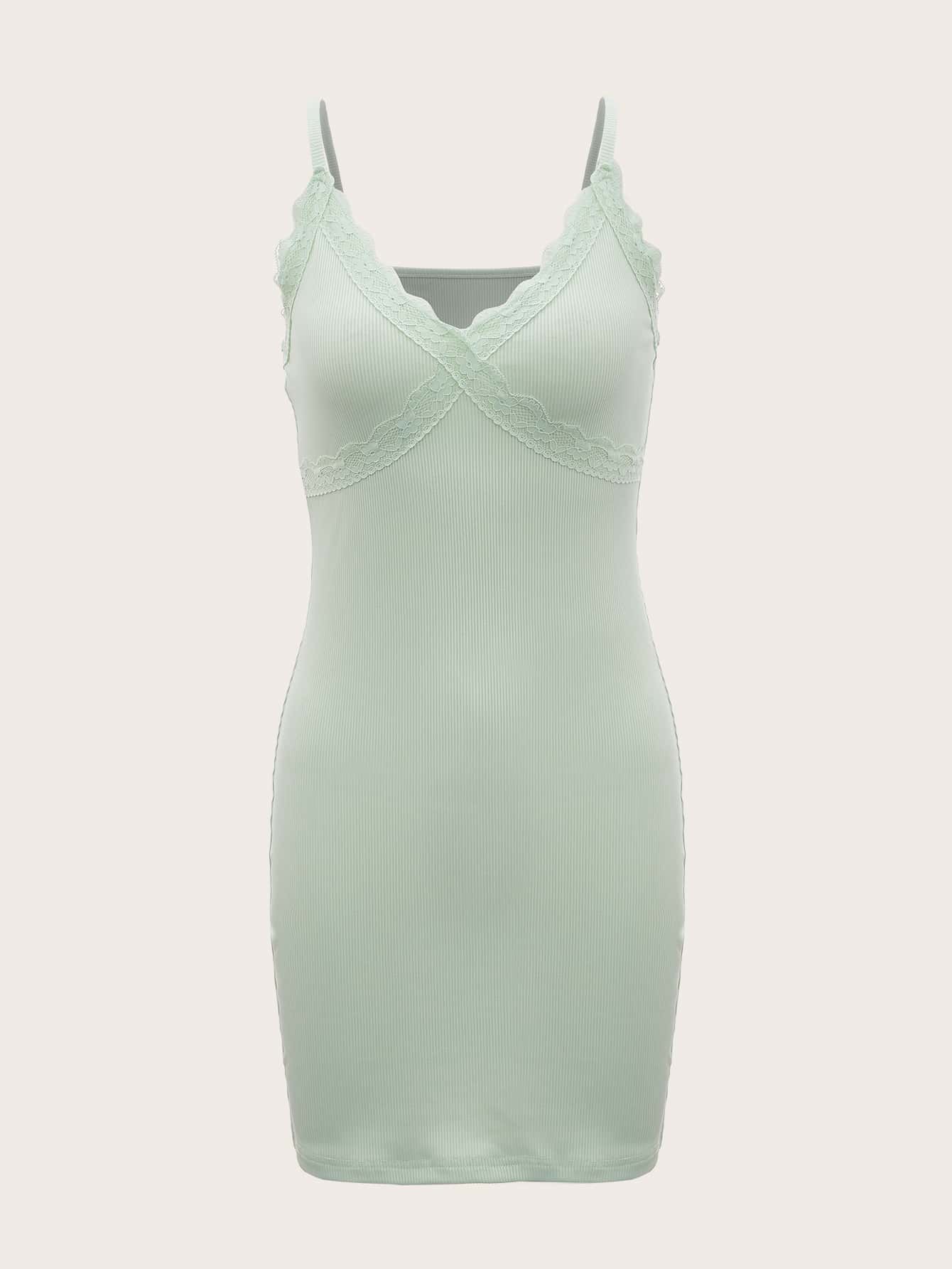 Abito con bretelle sottile monocolore pizzo a contrasto a costine