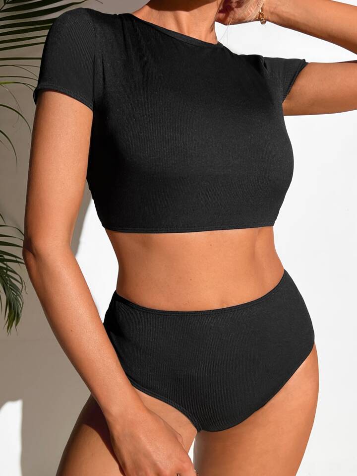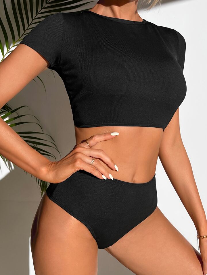 Set di Bikini con Schienale Incrociato Senza Schienale, Solido, Estate Spiaggia