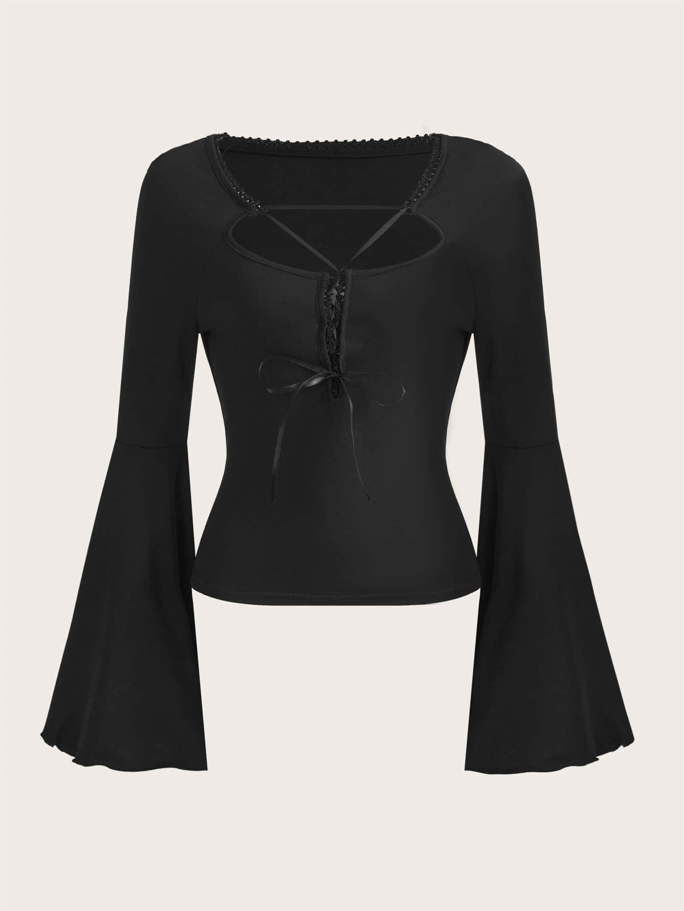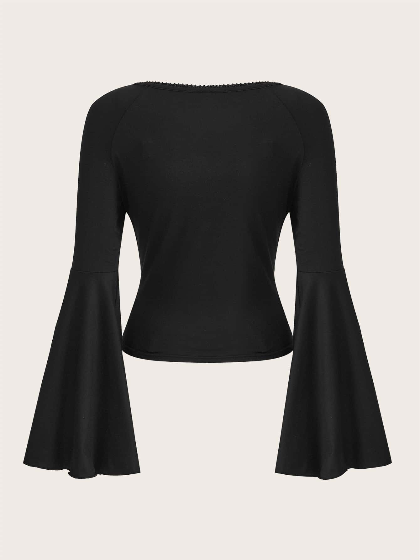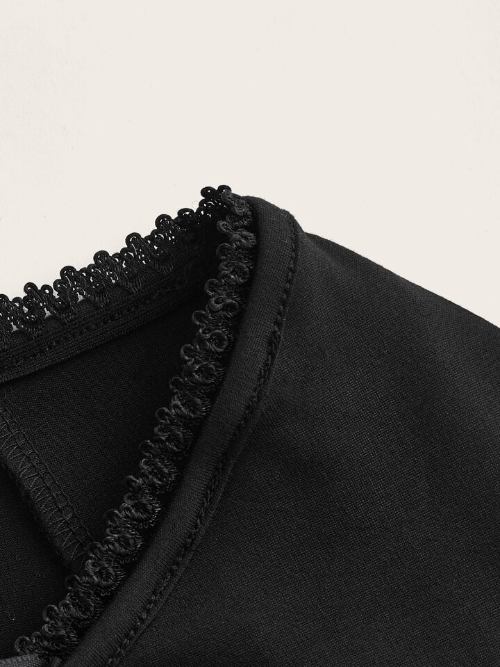 Maglietta monocolore orlo di pizzo manica svasata