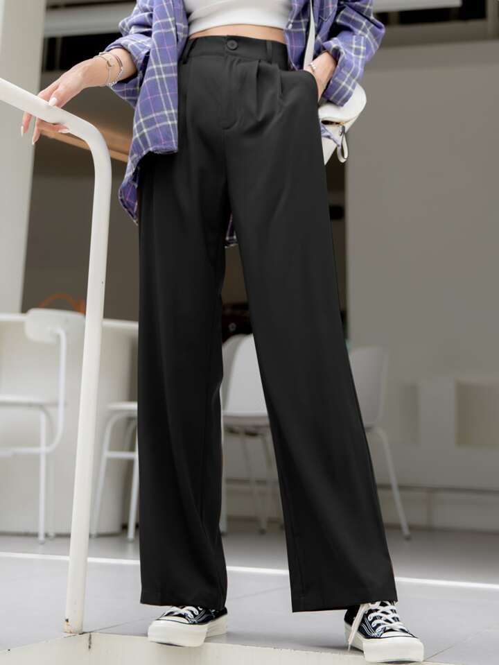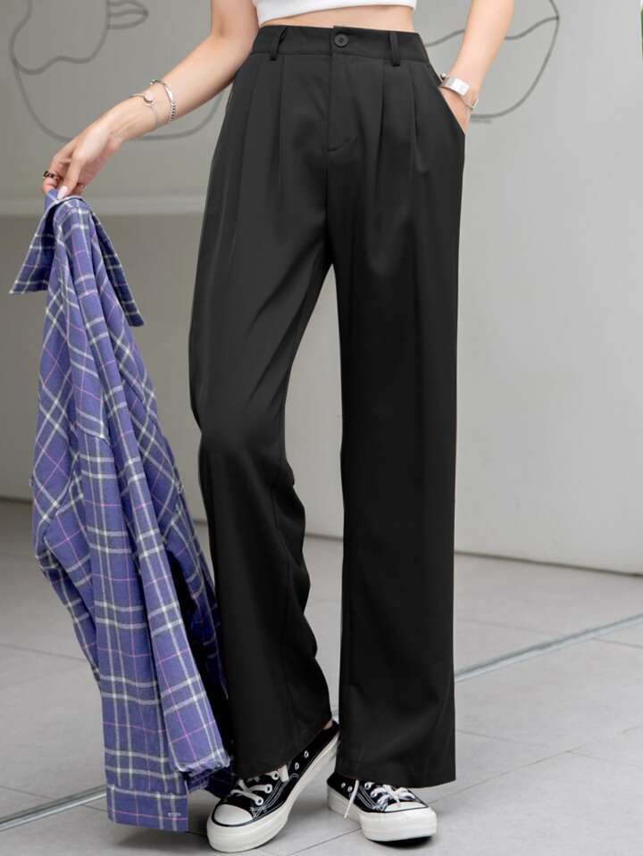 Pantaloni da tailleur a gamba dritta con pieghe, pantaloni da abito da donna per abbigliamento da lavoro