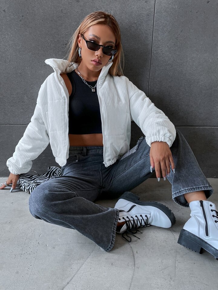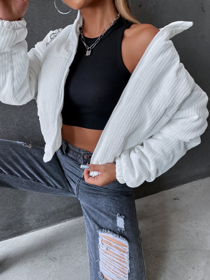Cappotto imbottito con cerniera e tasche, abbigliamento invernale