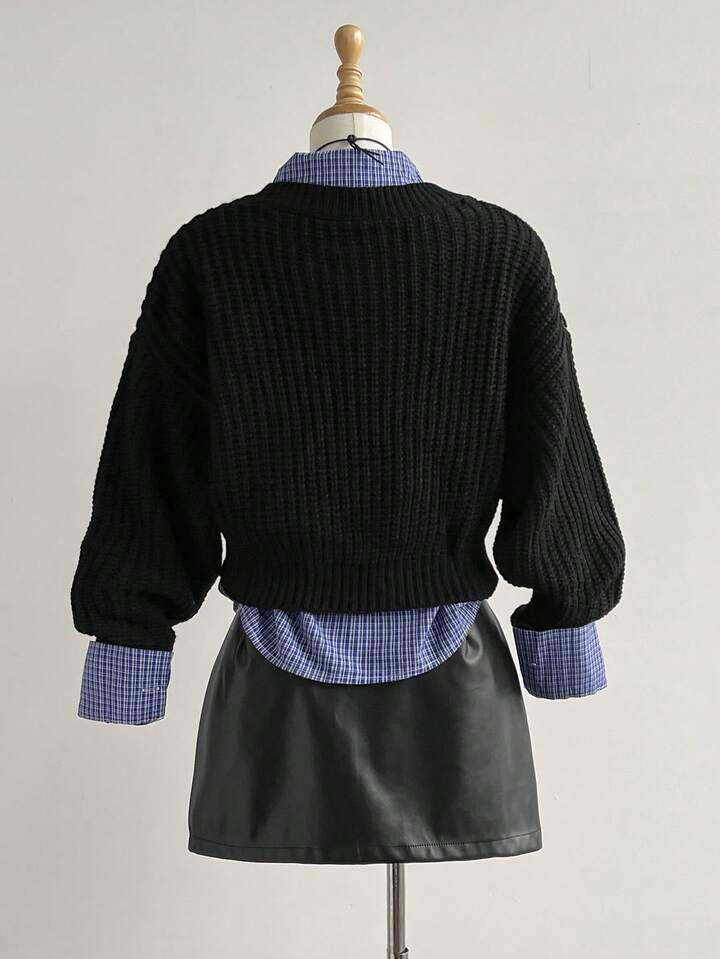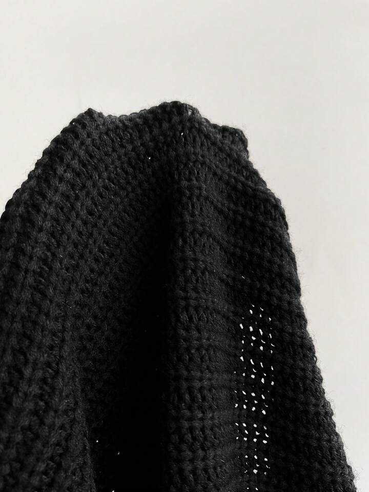 Maglione a costine con spalle scoperte, maglia casual con maniche lunghe e vestibilità classica, in colore nero, per primavera/autunno da donna