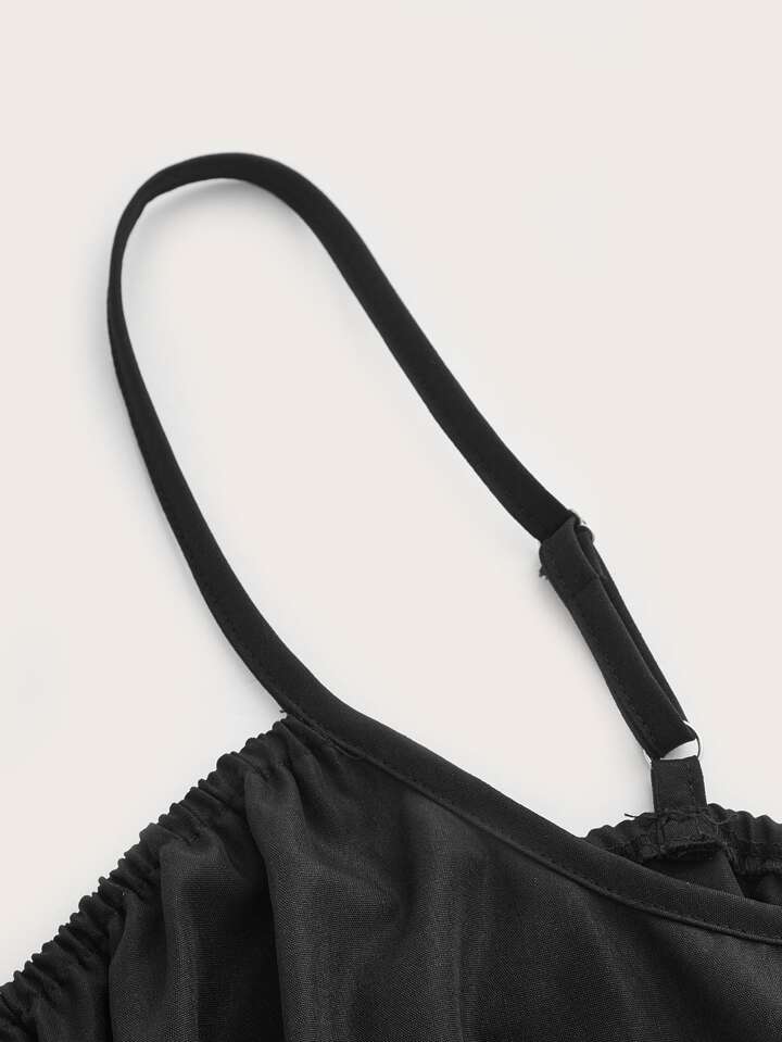 Abito con bretelle sottile monocolore bustino arricciato con volant