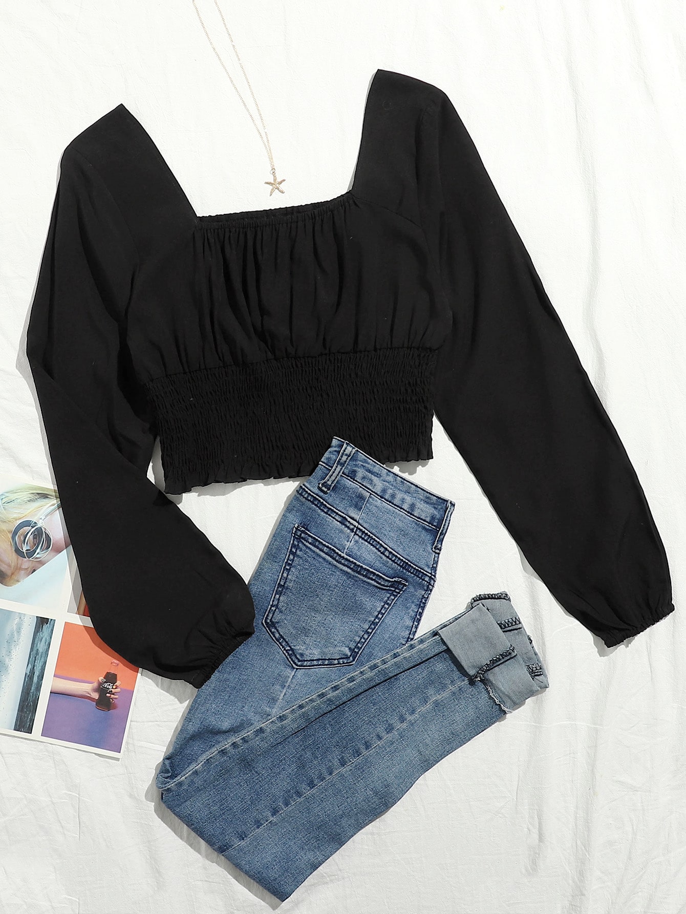 Camicetta corta arricicata monocolore