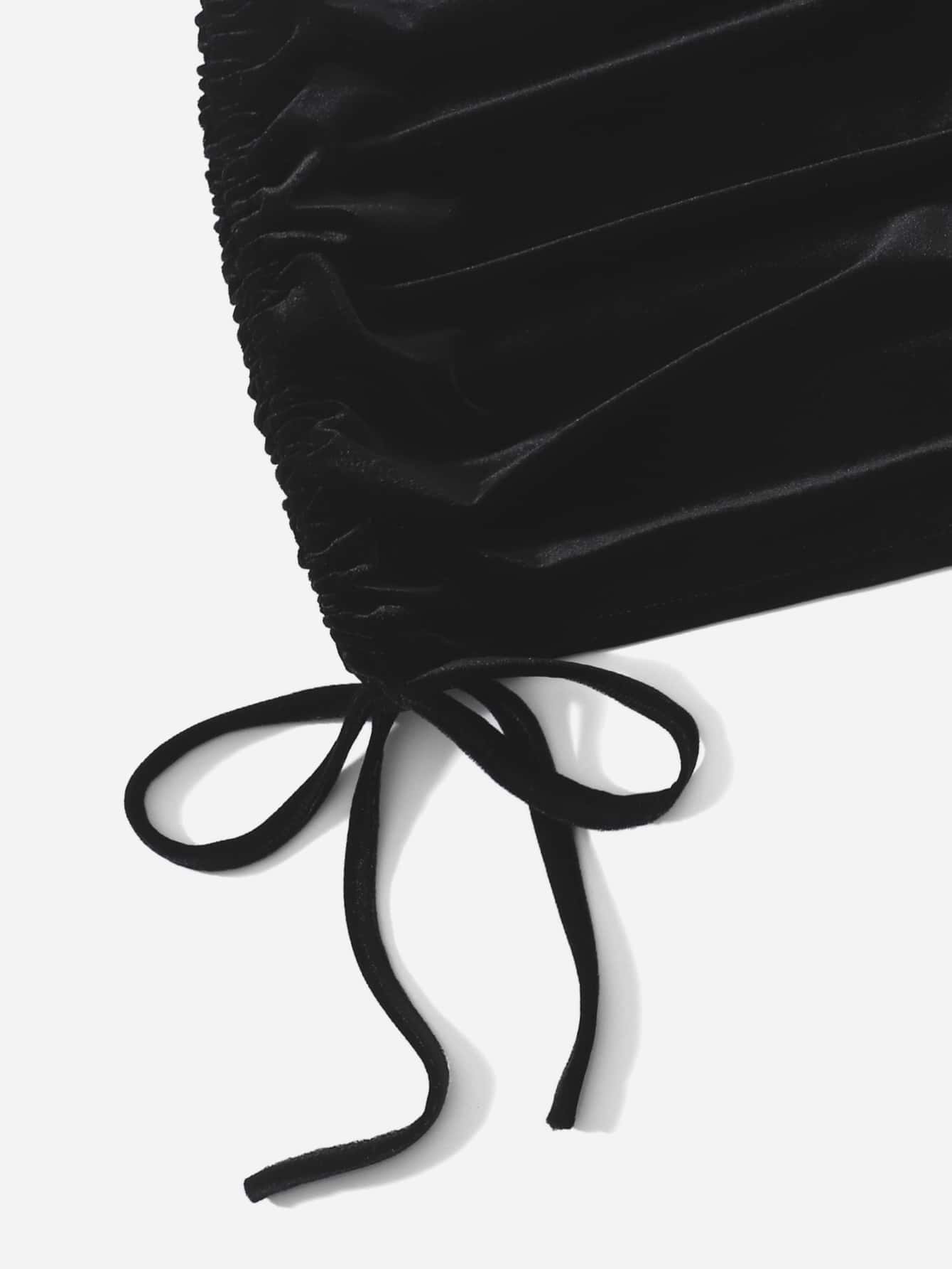 Abito monocolore di velluto con coulisse con volant con spalle scoperte