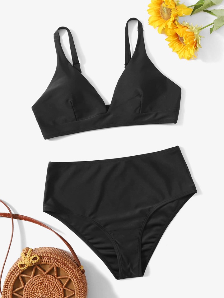 Set bikini versatile solido, spiaggia estiva
