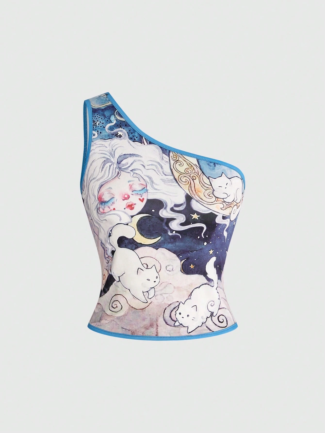 Pantaloncini sexy e dolci in stile Y2K, top corto con stampa personalizzata di gatti carini con spalline a spaghetti, canotta con stampa integrale e bordi a contrasto