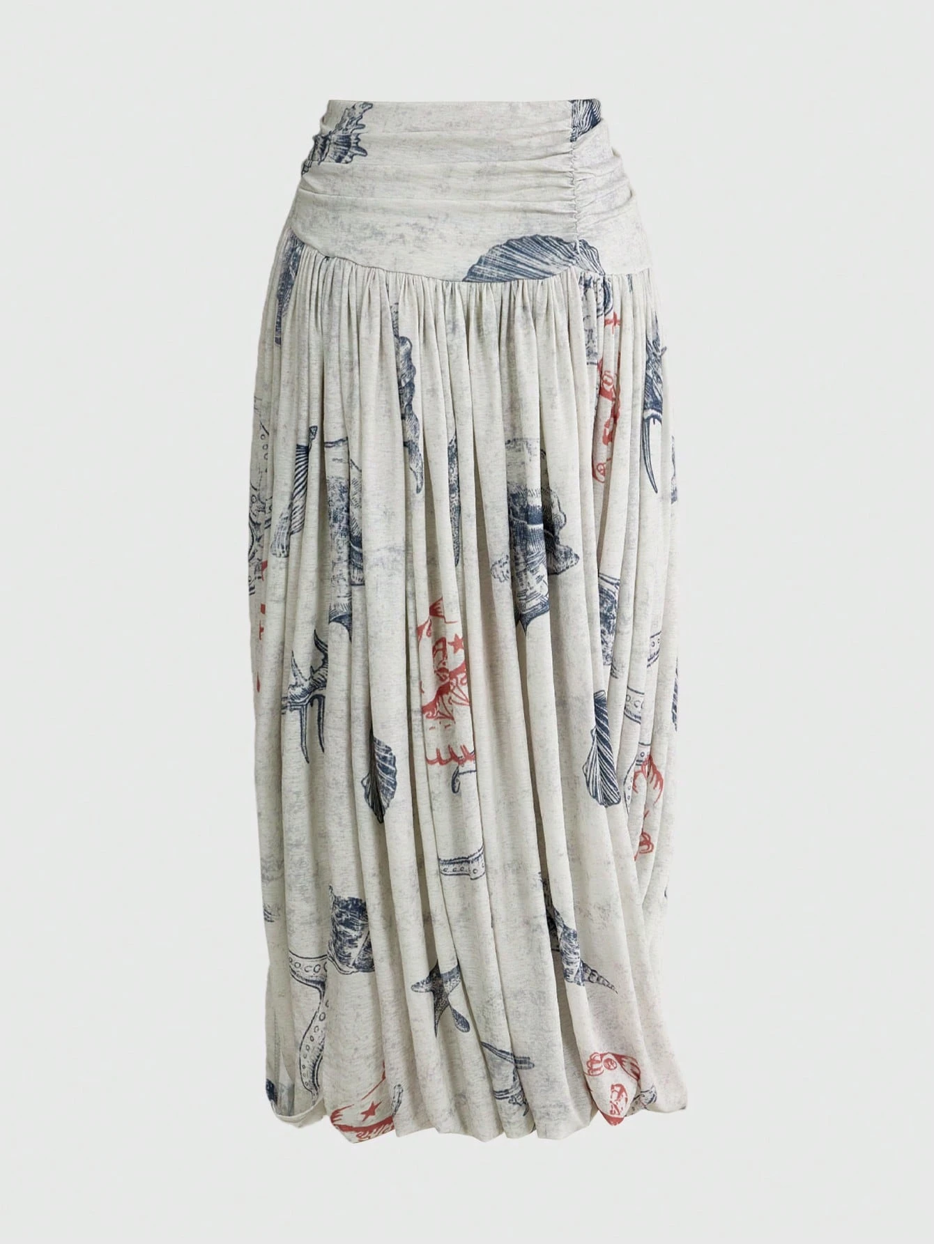 Gonna lunga arricciata in vita bassa con stampa di conchiglie e conchiglie per donna
