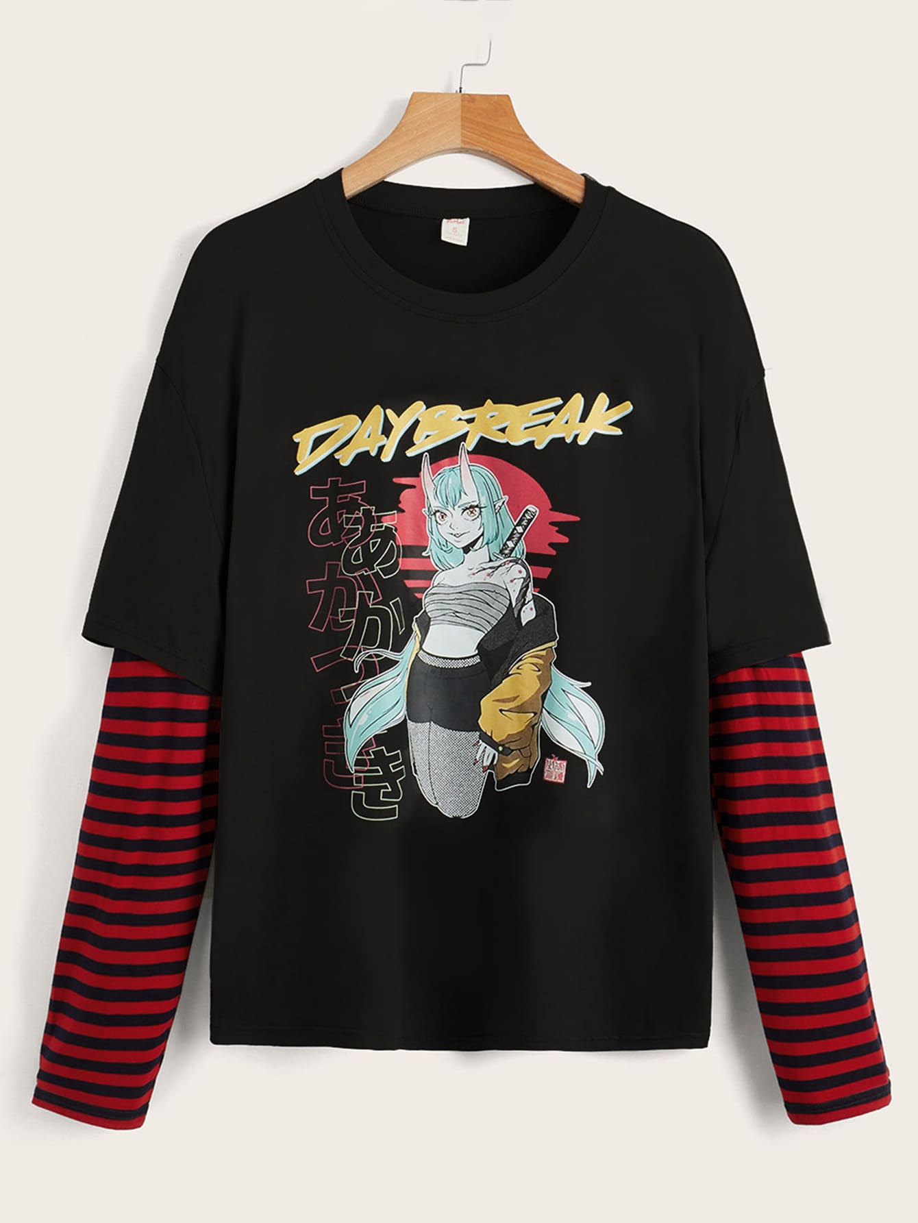 Square Apple Studios Maglietta 2 in 1 manica a righe con stampa figura