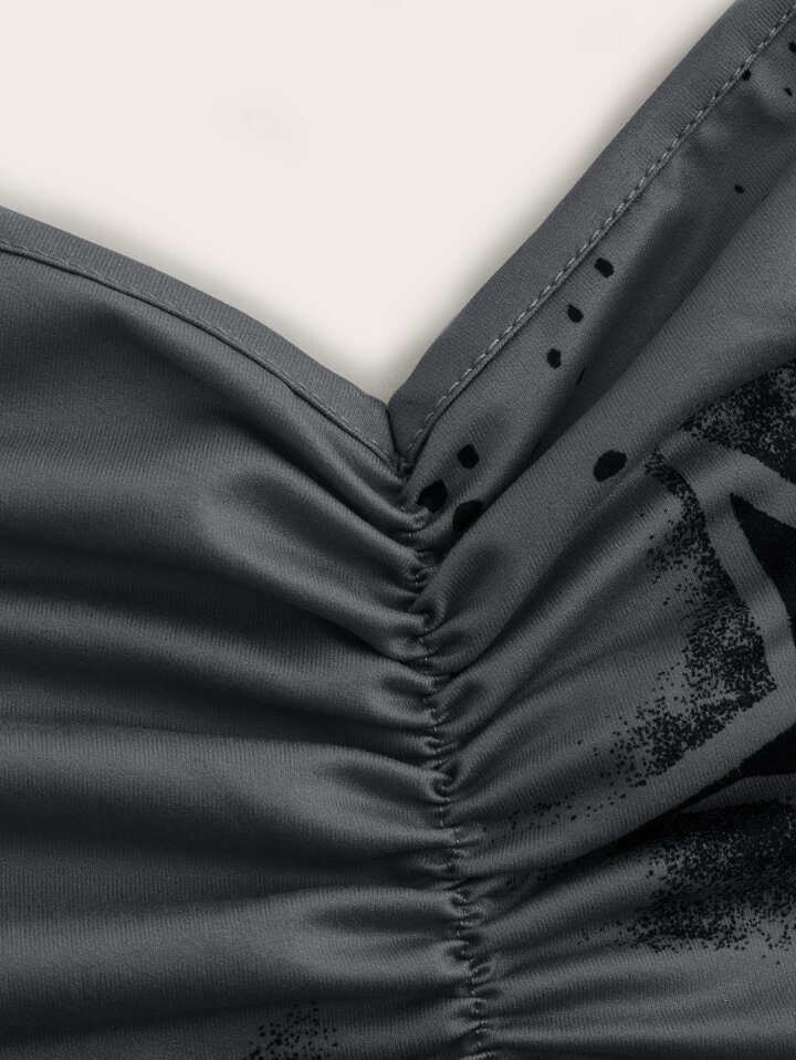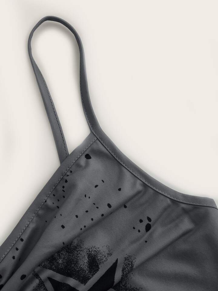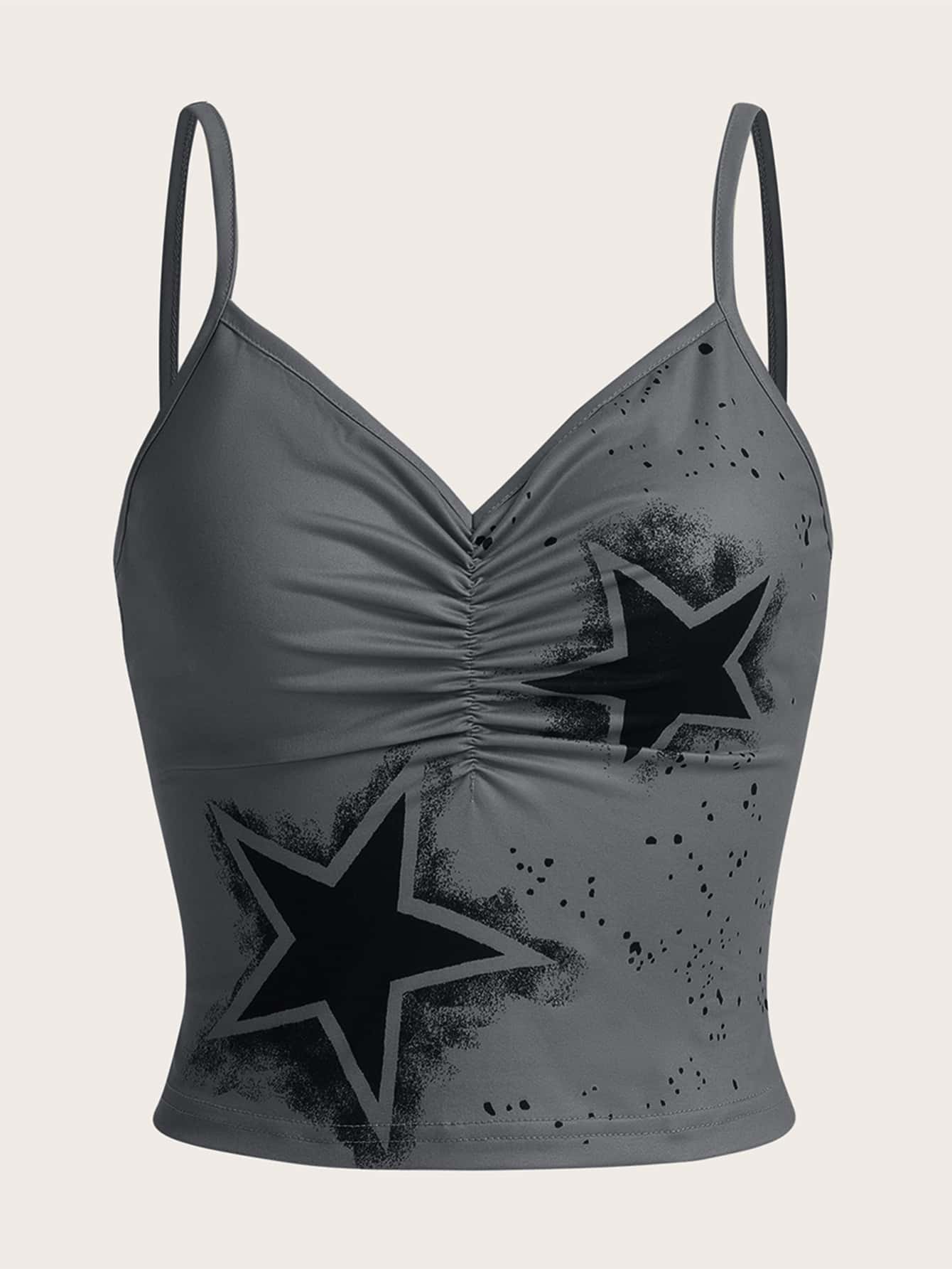 Top con bretelle sottile con stampa stella plissettato