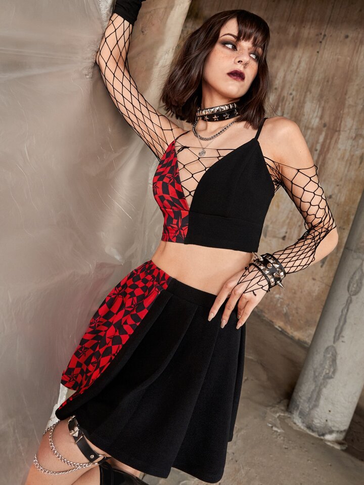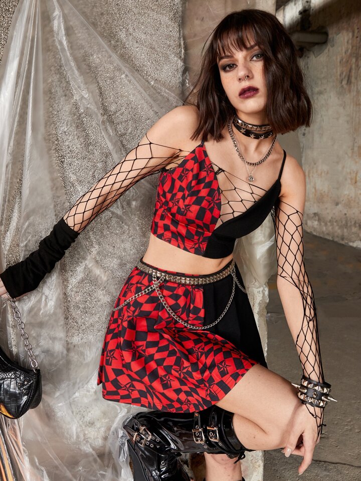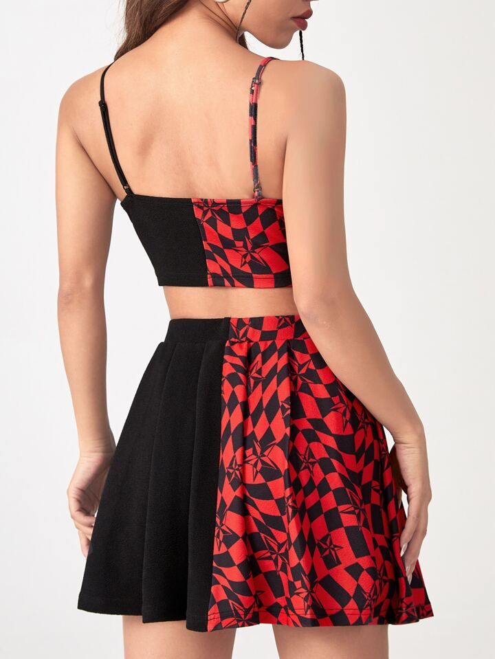 stella e con stampa quadri Top corto con bretelle sottile & Gonna Set senza mesh e Cinture