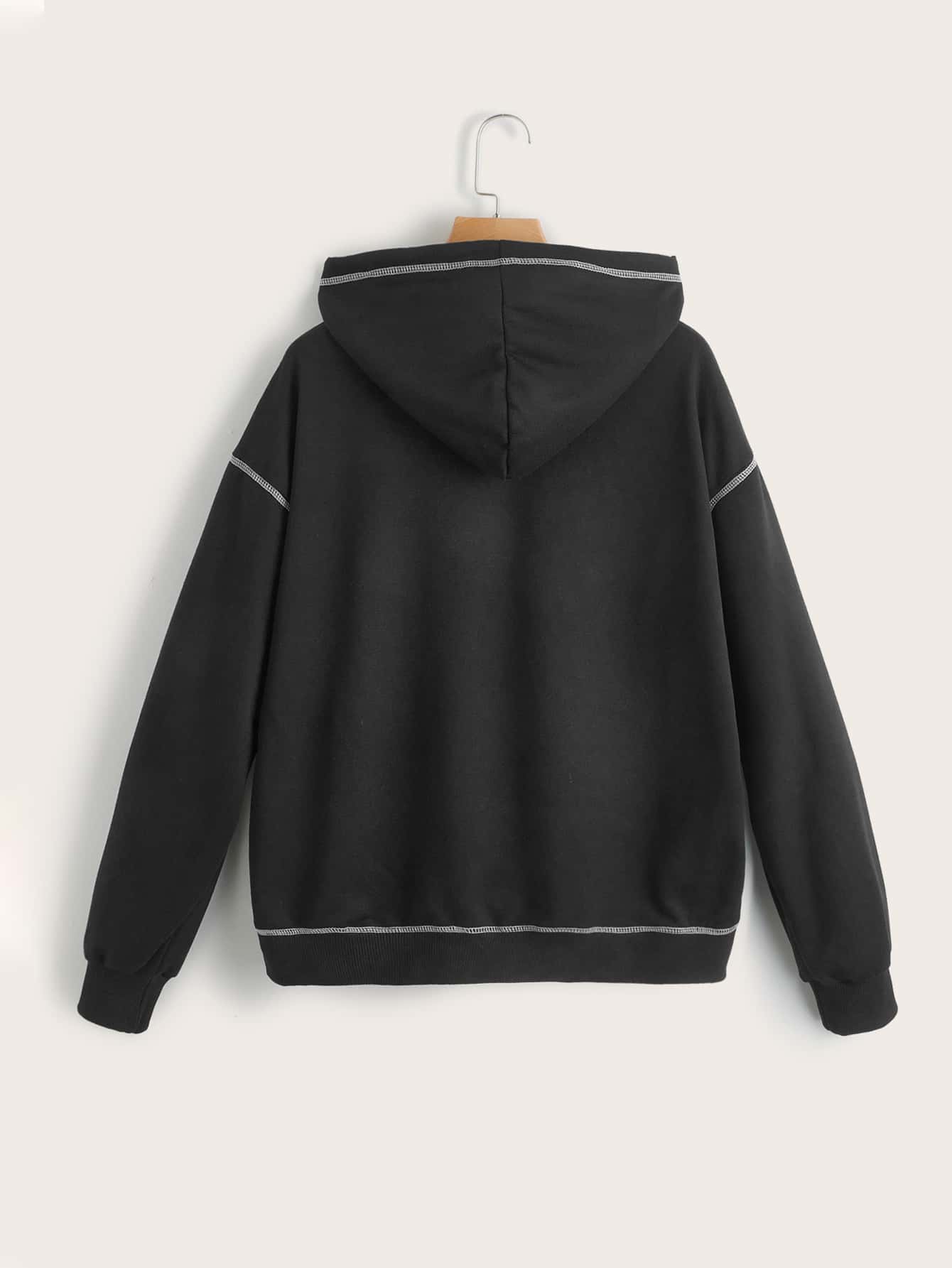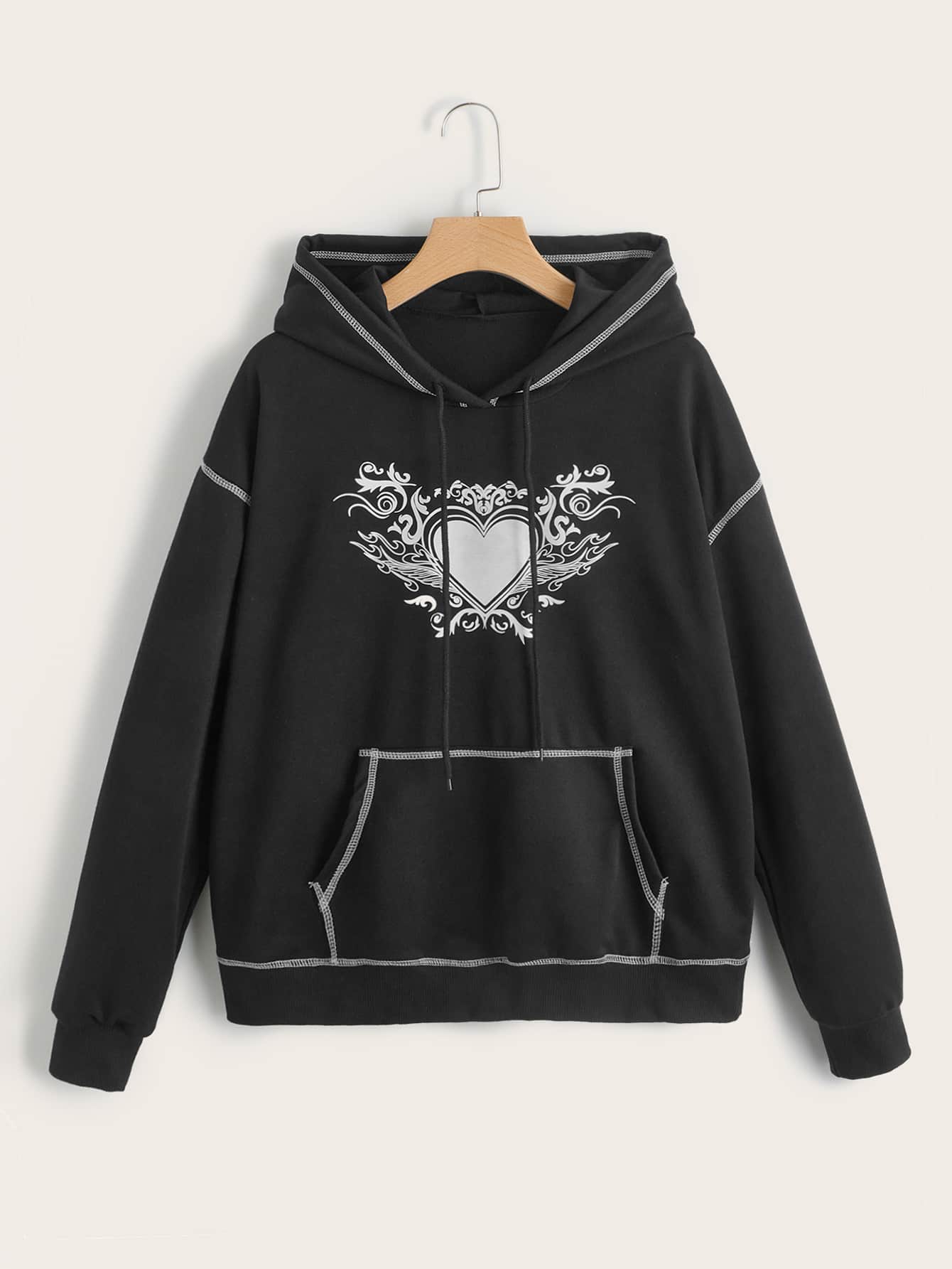 Felpa con cappuccio cucitura grafica cuore con tasca a marsupio con coulisse
