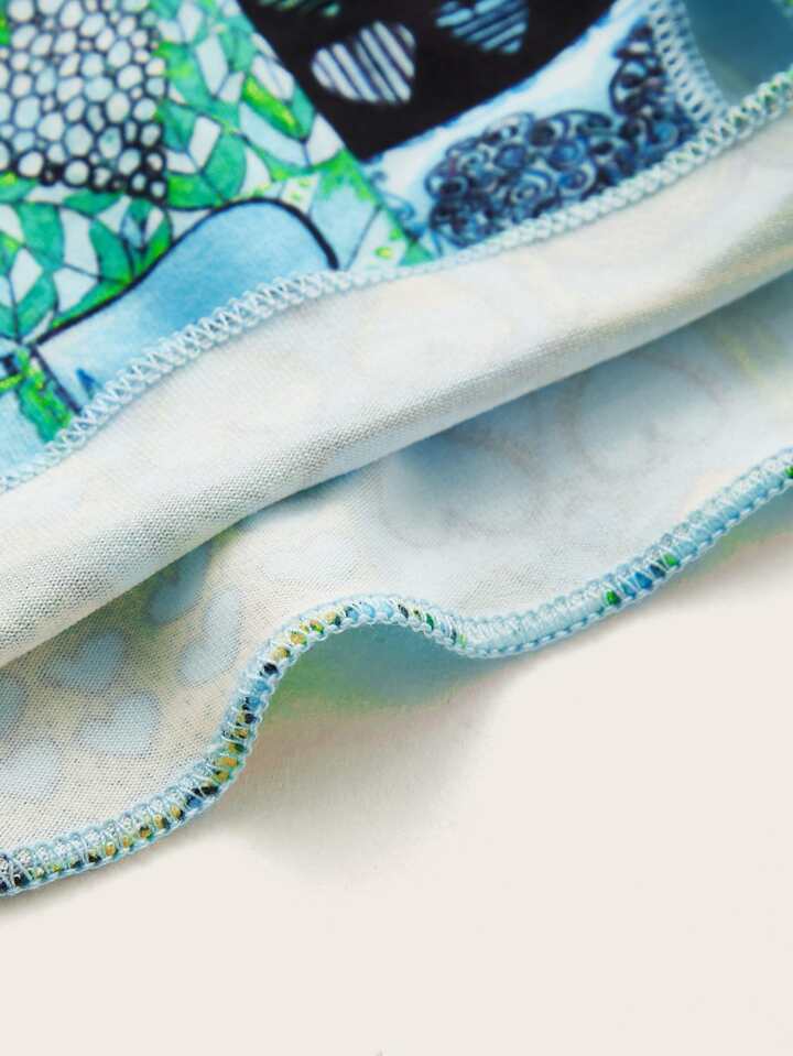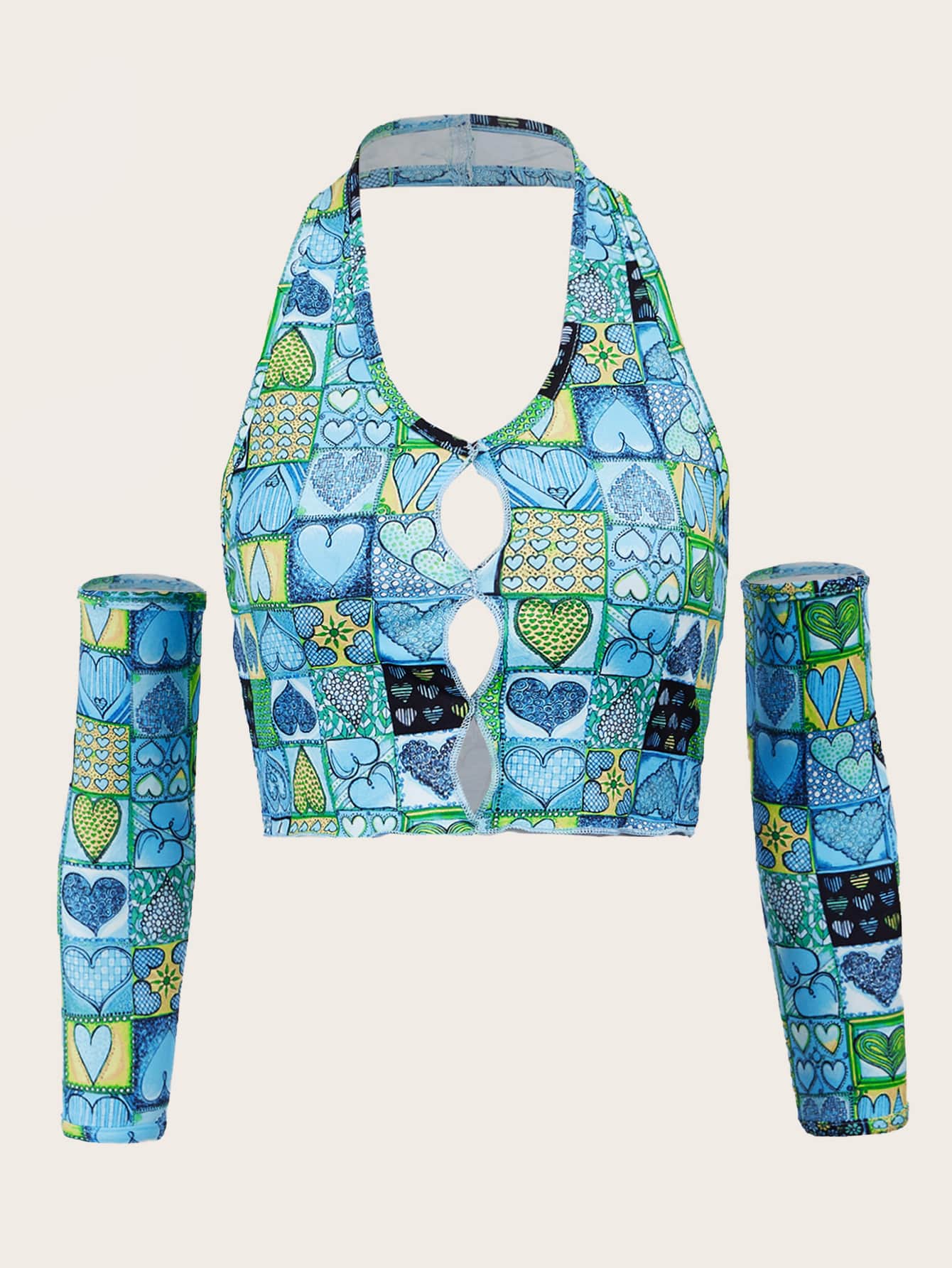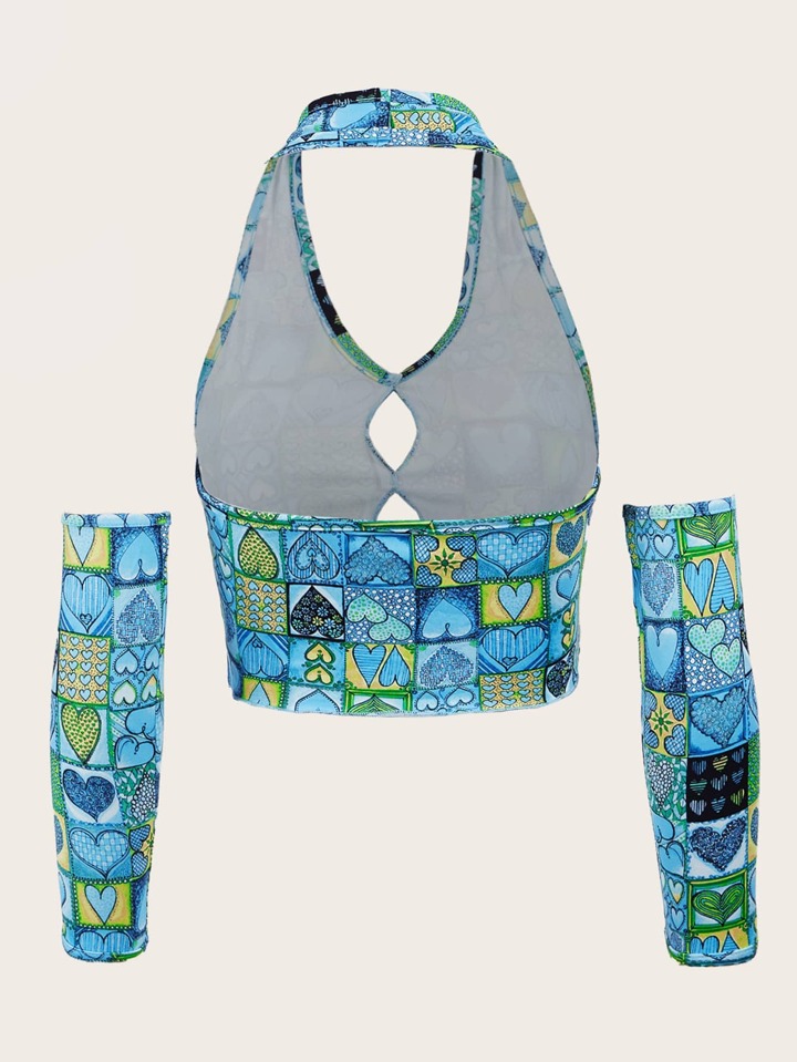 Top con scollo all'americana ritagliato con stampa a cuore e 1 paio super manica