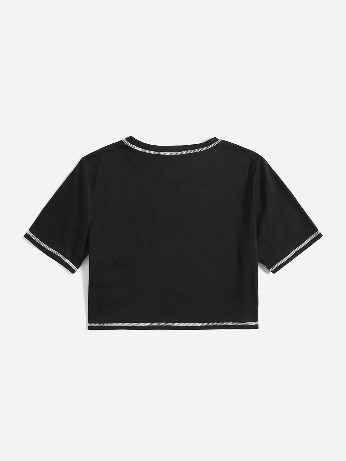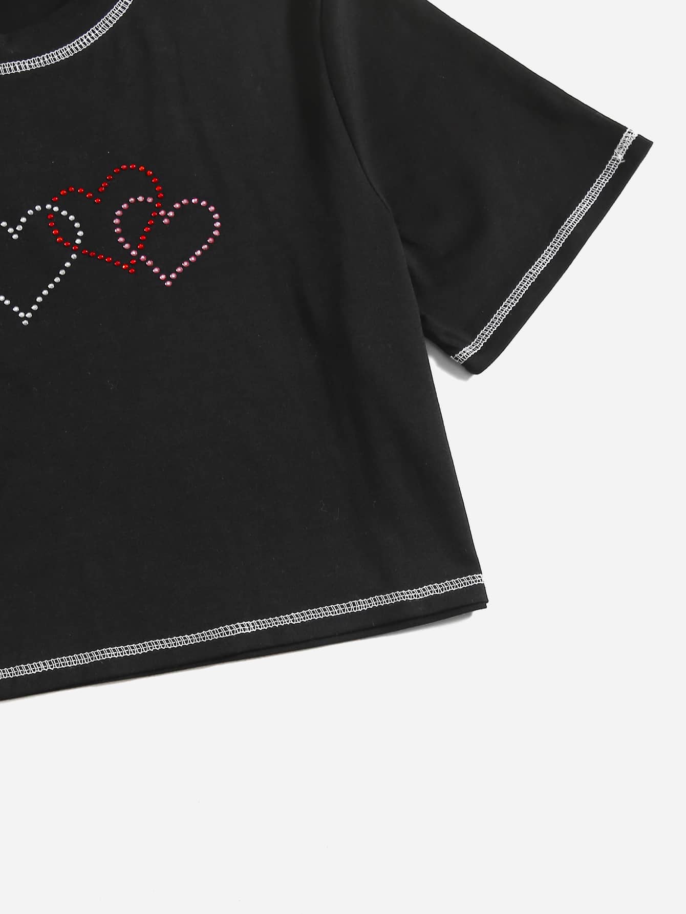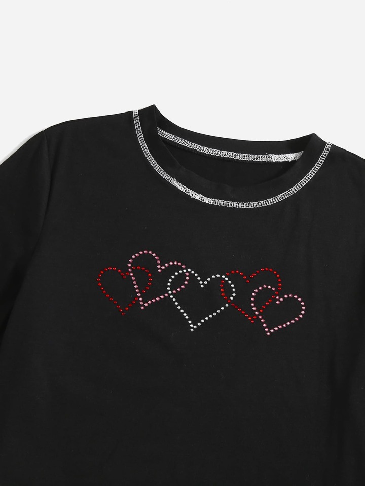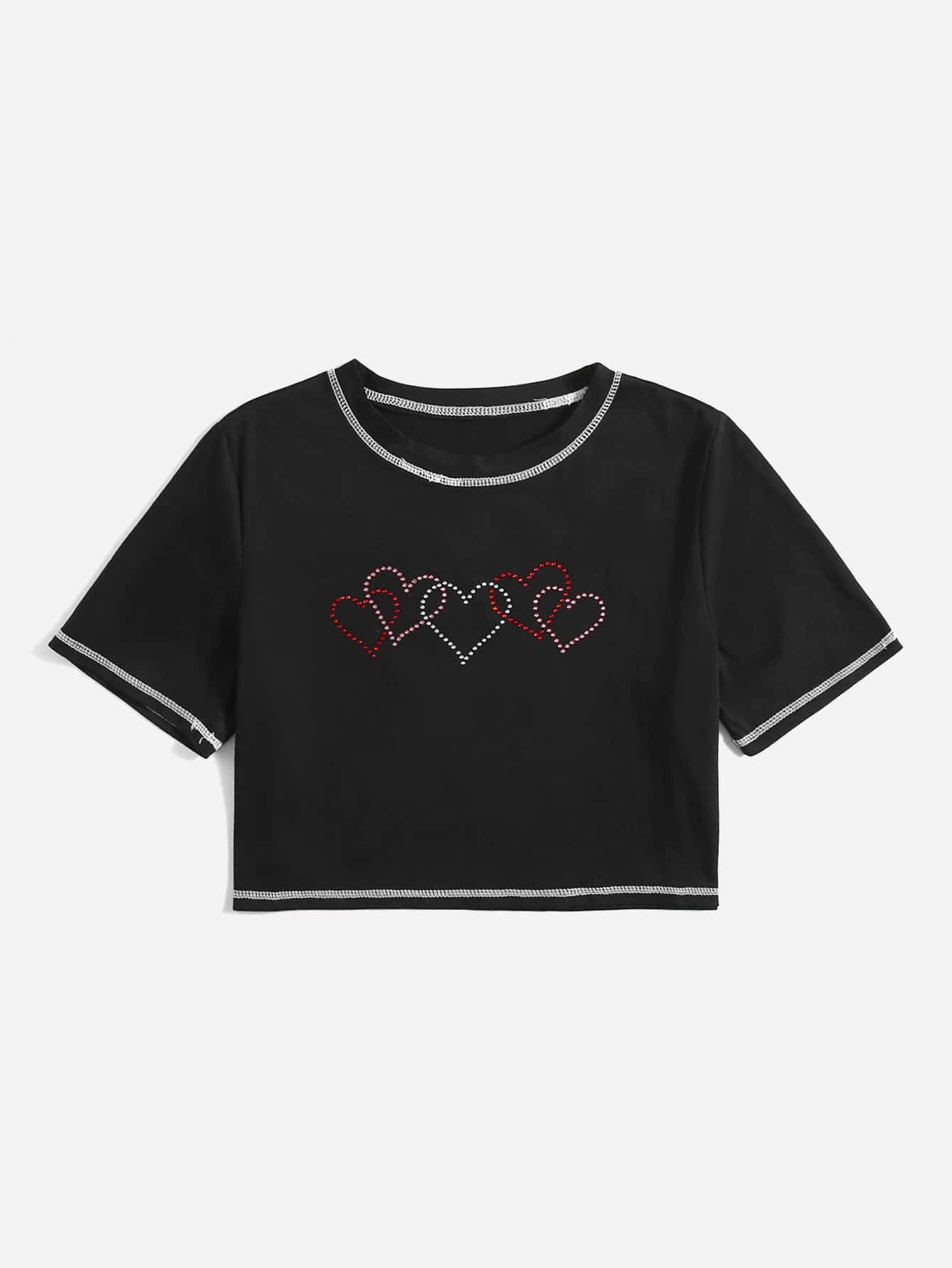 Maglietta corta cucitura cuore con strass