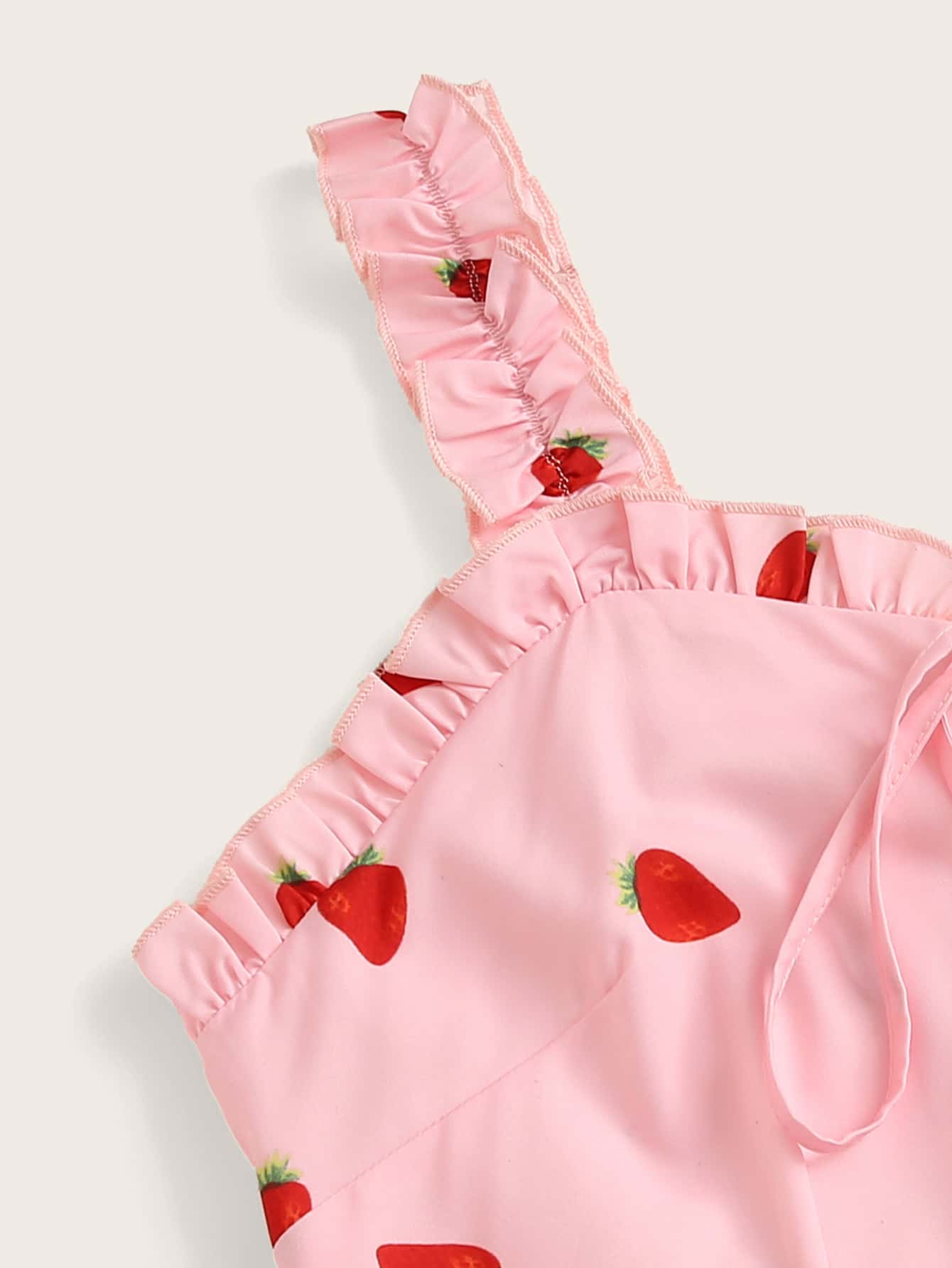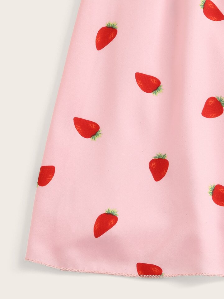 Abito con bordo a volant e lacci in pizzo e stampa fragola