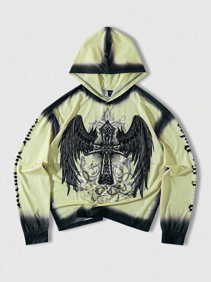 Felpa con cappuccio casual da uomo con stampa grafica a maniche lunghe