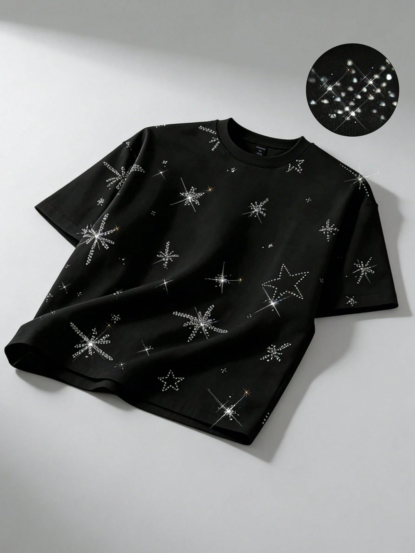 Street Life 2026 Primavera, Autunno e Estate Nuovi Arrivi Maglietta casual da uomo con applicazioni di strass, T-shirt girocollo unisex abbinata per coppie