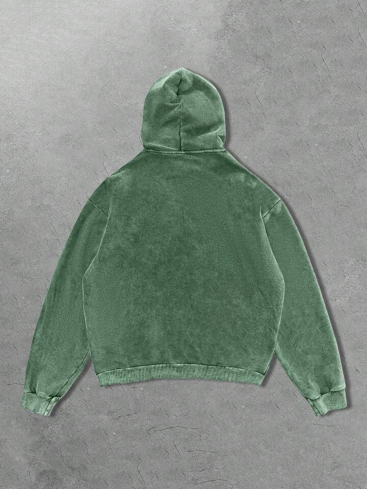 Street Life Felpa con cappuccio nera lavata con acido, senza tasche, per uomo