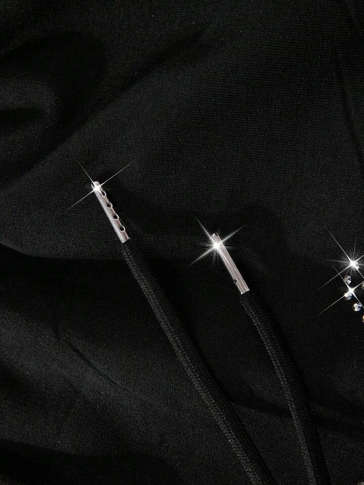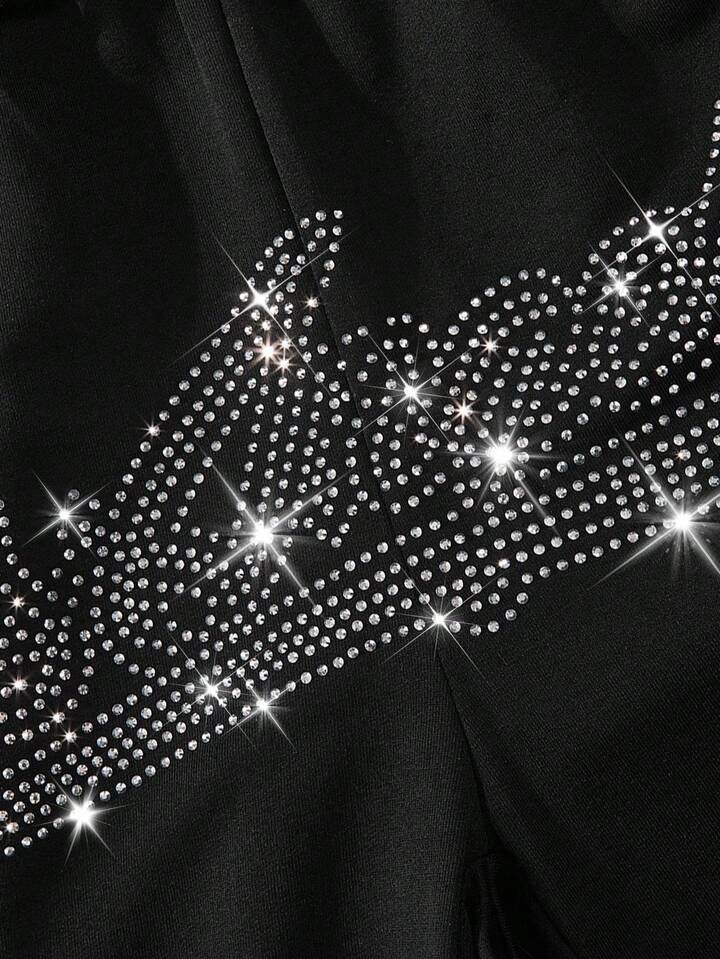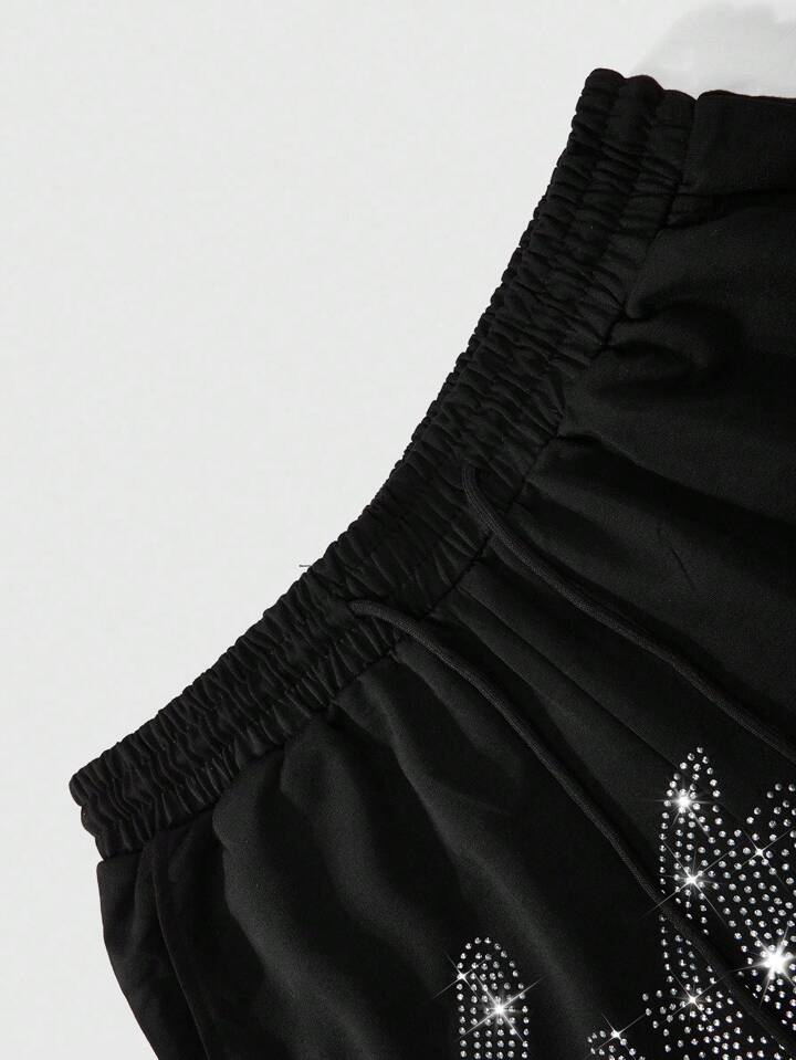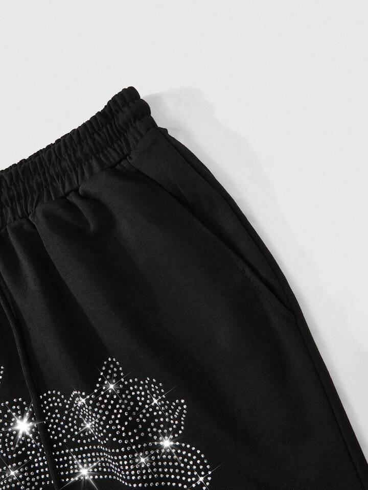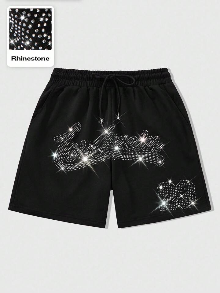 Street Life Pantaloncini sportivi casual da uomo con stampa di strass neri e marchio in stile inglese