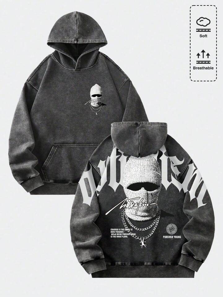 Street Life Cappello balaclava da ragazzo, felpa con cappuccio con stampa grafica lavata