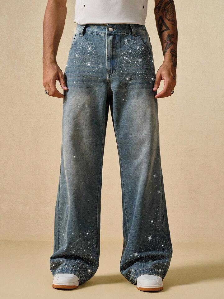 Street Life Jeans comodi e larghi casual, impreziositi da strass, adatti per l'uso quotidiano