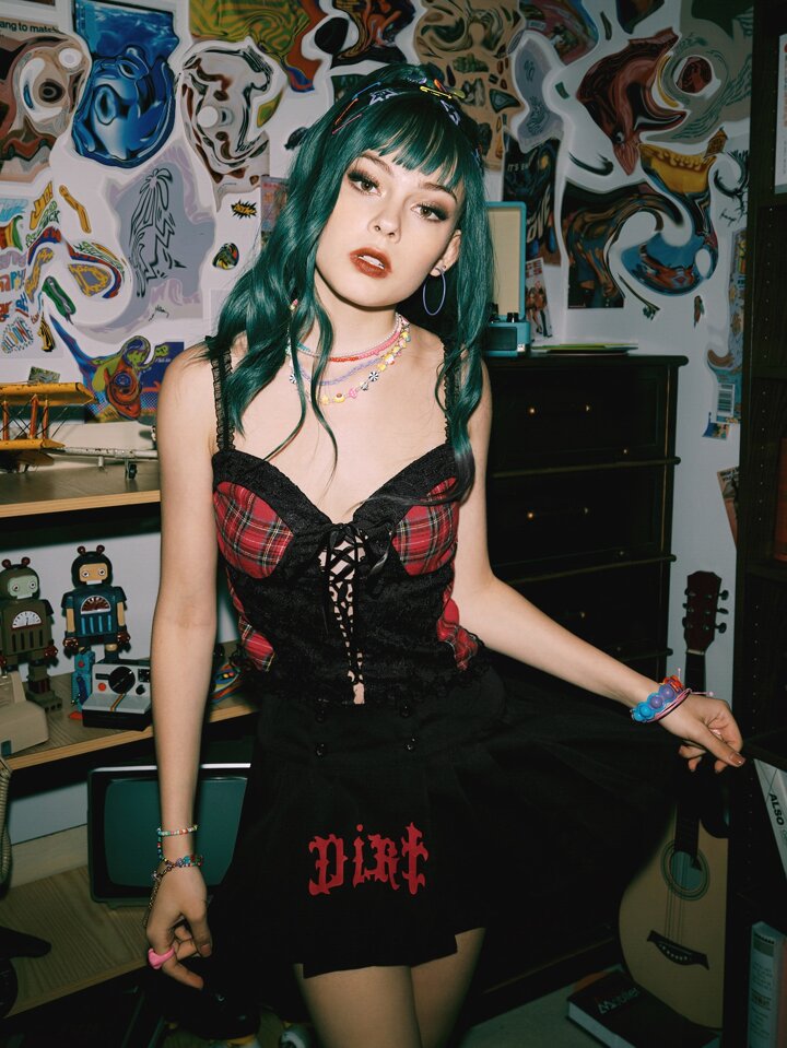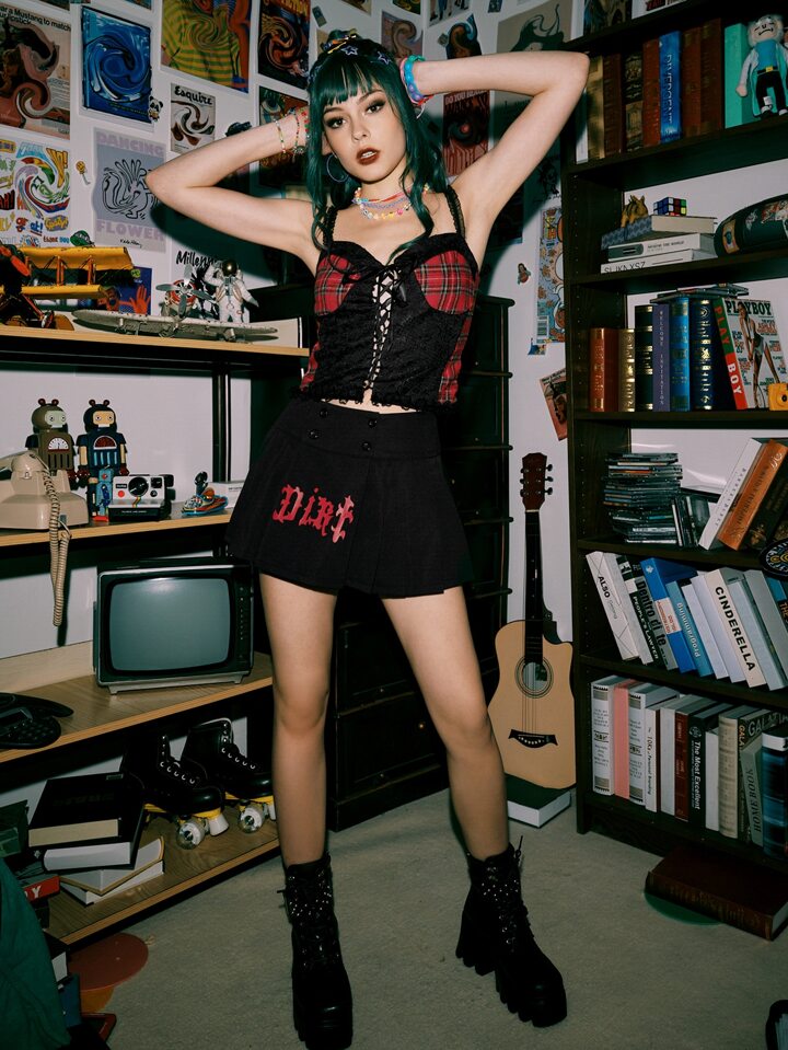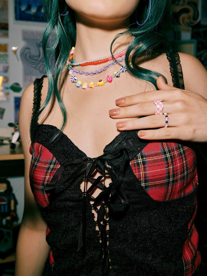Street Life Top pizzo a contrasto color block a quadri con lacci